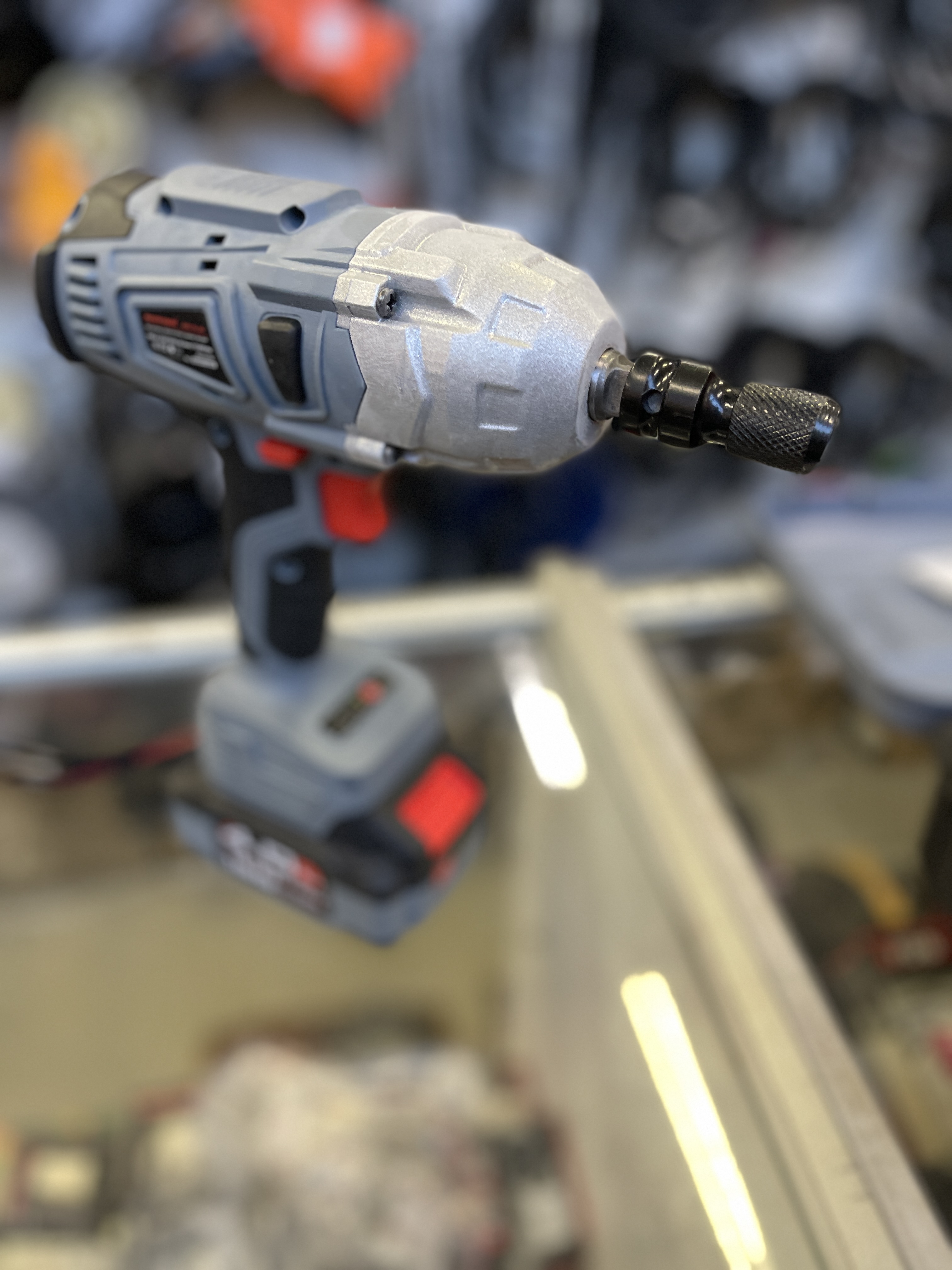 Суперкомплект: гайковерт в сборе, аккумулятор 4000 mAh серии DW, импульсное зарядное устройство, ударная головка 1/4", насадка-переходник на 1/4" (6,35мм), полимерный кейс.