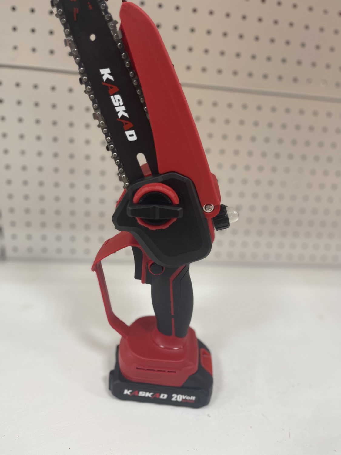 Пила аккумуляторная KASKAD BCS-808-6″ предназначена для прямолинейного распила веток, реек, твердой и мягкой древесины. Инструмент разрешается использовать только для резки древесины. Отличается мобильностью — не требуется подключать устройство к сети переменного тока. Оснащена щеточным мотором. Рукоятка с прорезиненным покрытием не скользит в ладони и обеспечивает надежный хват. Щиток защищает руку и выступает в качестве тормоза цепи. Скоба упрощает хранение в хозяйственном блоке — пилу можно подвесить на гвоздь.