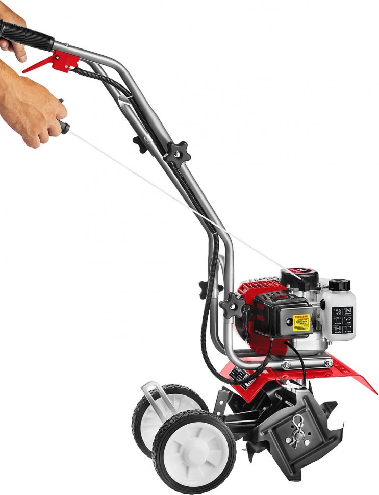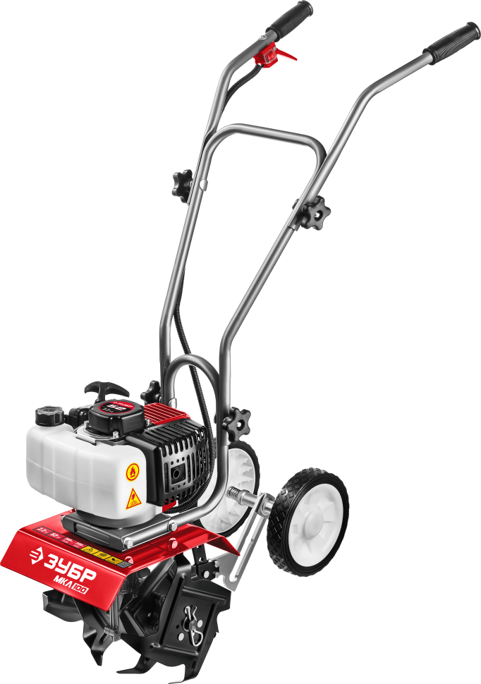 Мощность 2,2 л. с. (1 600 Вт) — двухтактный двигатель ЗУБР готов к работе даже на плотных почвах.