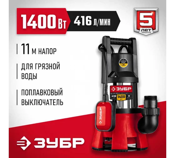 ЗУБР 1400 Вт, дренажный насос для грязной воды, корпус - нерж. сталь (НПГ-М3-1400-С)