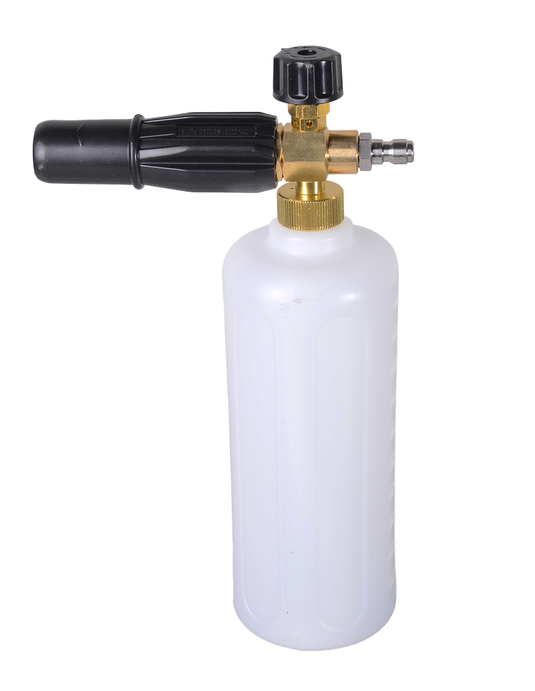 Профессиональный пеногенератор идет в комплекте. Он позволяет совместно с специальными шампунями создавать густую плотную пену, которая хорошо отмывает жирные пятна, сажу и солевые отложения.