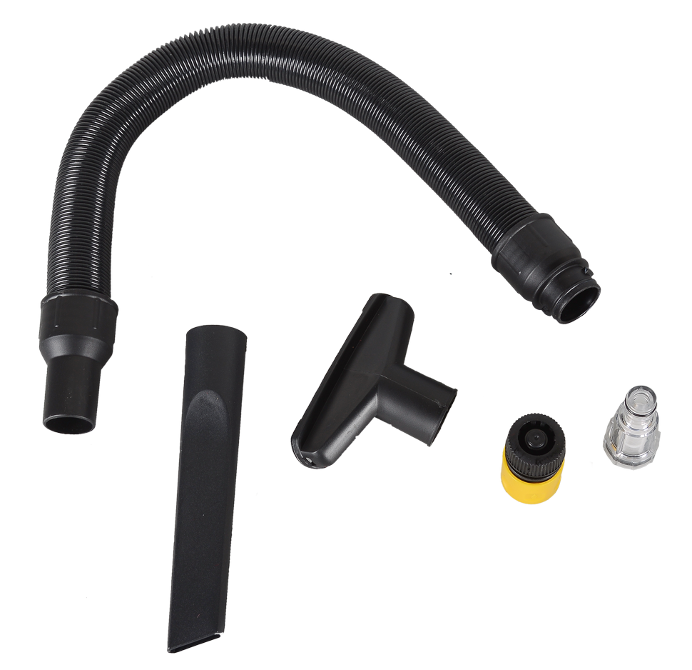 Мойка-пылесос отличается хорошей мобильностью, так как комплектуется большими колесами и шлангом длиной 8 м.
