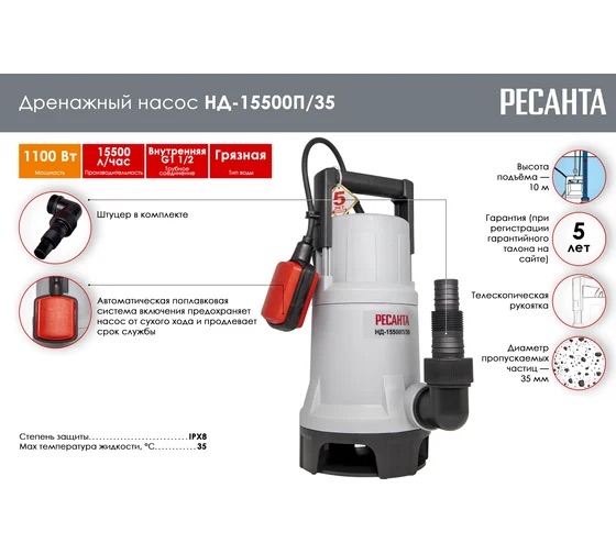 Закажите «Ресанта НД‑15500П/35» прямо сейчас — и пусть ваш участок остаётся сухим, а вы сможете посвятить себя делам, достойным вашего внимания!