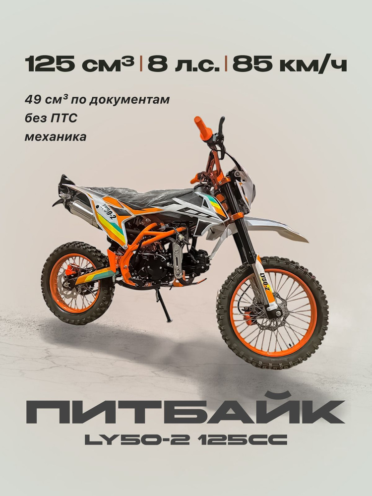 Мотоцикл Питбайк LY50-2 125 см3, 8 л.с, 70/100-17"/ 90/100-14", эл./кикер, фара,фильтрбокс в Челябинске