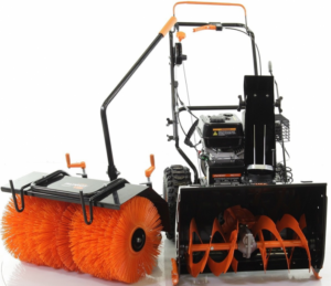 Есть насадка в виде крутящейся щётки для быстрого и качественного подметания дорожек.