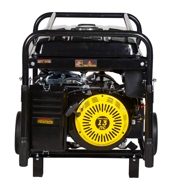 Генератор имеет расширенную комплектацию: комплект ручек и колёс и аккумуляторная батарея.