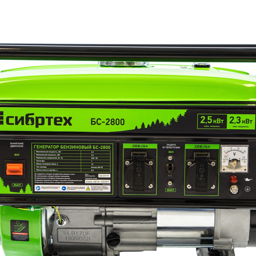 Генератор бензиновый БС-2800 ручной стартер Сибртех
