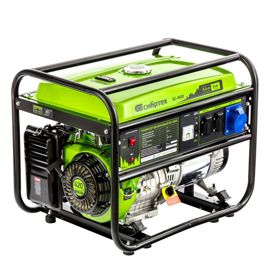 Бензиновый генератор Сибртех БС-8000 отлично подойдет для дачи, стройки, торговой палатки, гаража или мастерской. Высокая мощность - 6 кВт и силовая розетка позволяют одновременно подключить: мощный водяной насос, электроплиту и обеспечить освещение рабочего места. Одной заправки бака хватит для работы генератора в течение 8,3 часа.