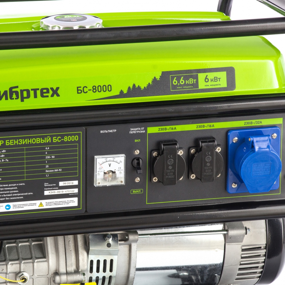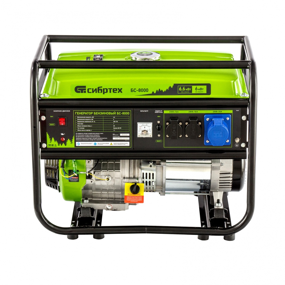 Генератор бензиновый бс-8000, 6600 вт сибртех