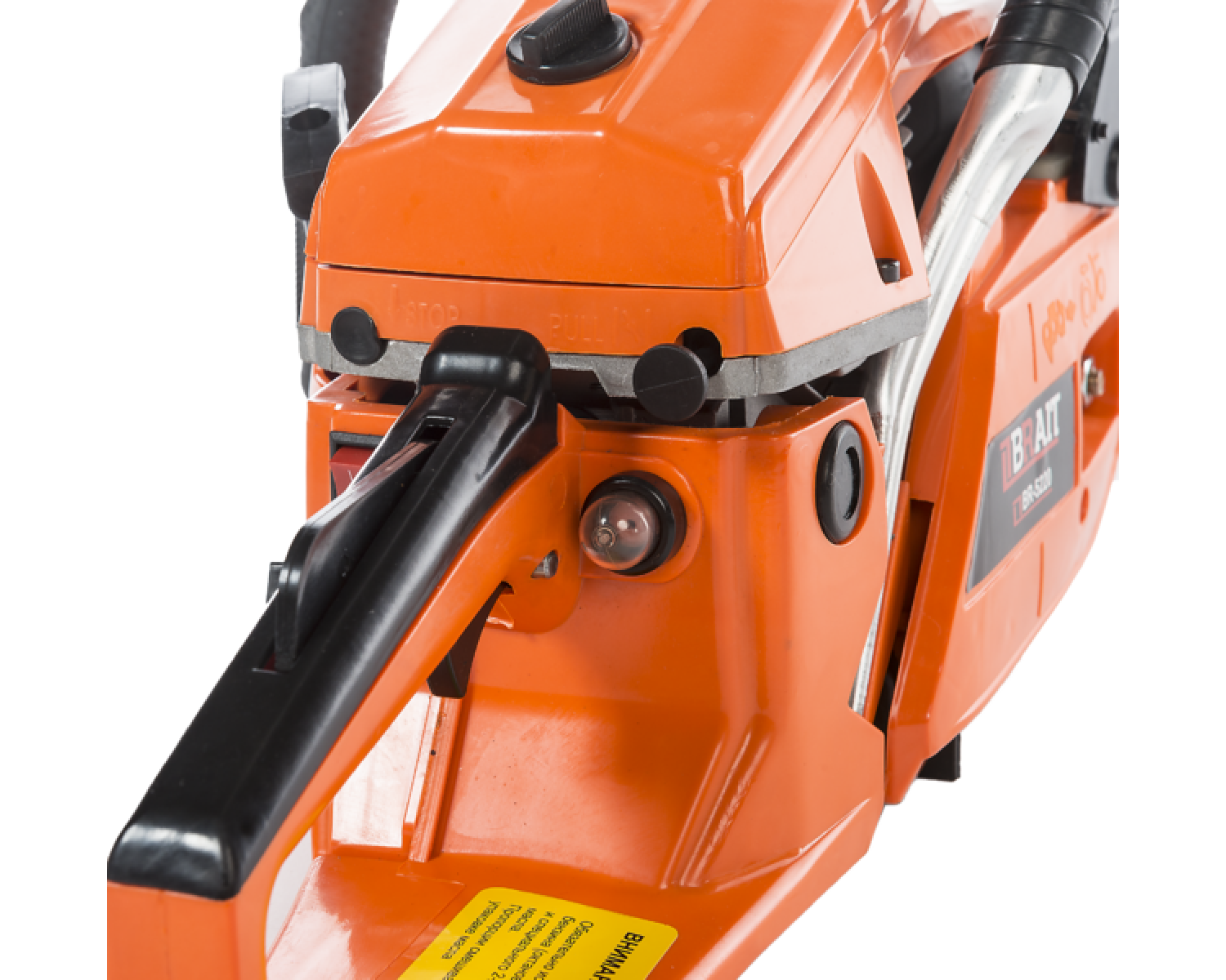 При отбросе пилы, срабатывает тормоз и пильная цепь моментально останавливается.