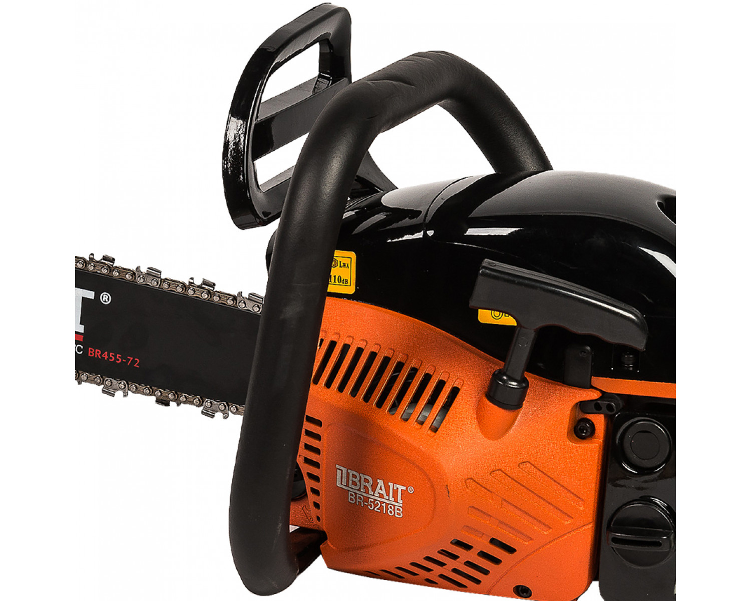 Удобная рукоятка бензиновой пилы позволяет легко переносить инструмент одной рукой.