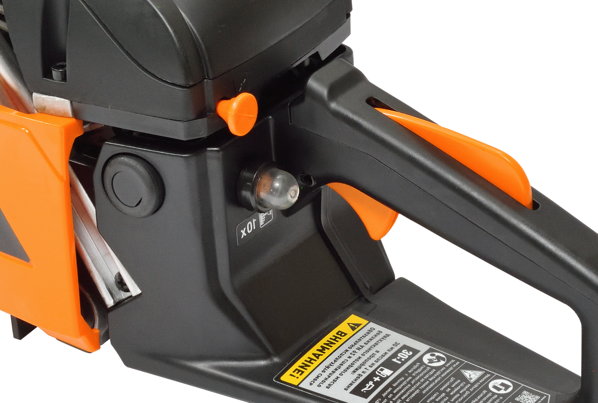 Топливная помпа — если вдруг капризничает, подкачал — и снова в бой. Дождь, снег, сырость? Пила не ноет, а работает.