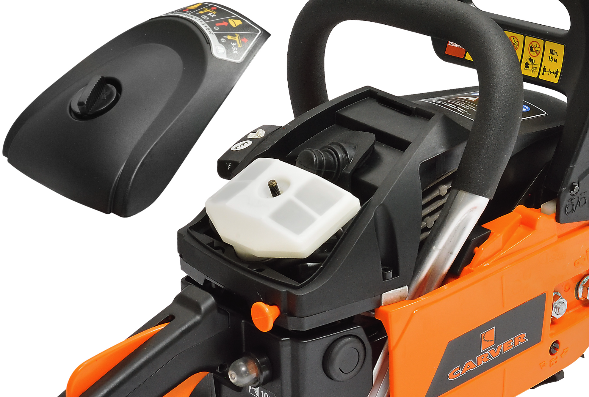 Топливная помпа — облегчает запуск в сложных условиях. Дождь, снег, холод? Пила готова к работе в любую погоду.