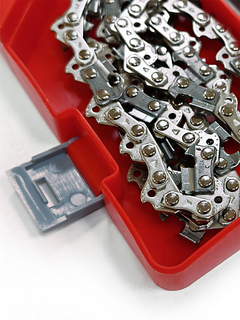 Пластиковый бокс: В комплекте с цепью идет пластиковый бокс, который удобно хранить и транспортировать цепь. Бокс защищает цепь от повреждений и загрязнений, а также гарантирует безопасность при хранении.