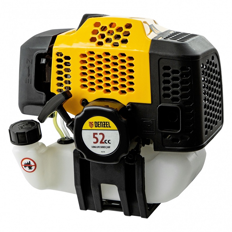 Надежный бензиновый триммер Denzel DGT-52-PRO способен скашивать не только траву, но и мелкий кустарник. Он рассчитан на интенсивные нагрузки, поэтому его также можно использовать для заготовки сена в сельском хозяйстве или для ухода за придомовыми территориями коммунальными службами