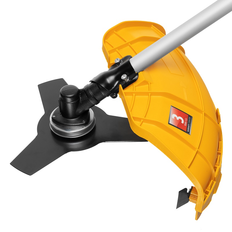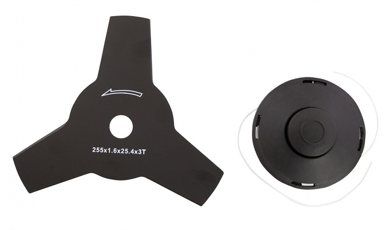 Комплектуется двумя режущими оснастками — усиленной катушкой с леской и трехлопастным стальным ножом