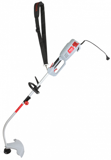 D-образная ручка обеспечивает надёжную фиксацию электротриммера и удобство при кошении. Электрический триммер имеет защитный кожух, оберегающий пользователя от вылетающих из-под режущего инструмента обрезков травы, сухостоя и мусора.