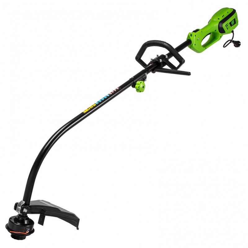 Он имеет изогнутую форму штанги, что позволяет легко обрабатывать участки даже в труднодоступных местах: вдоль заборов, стен, тротуаров и вокруг деревьев