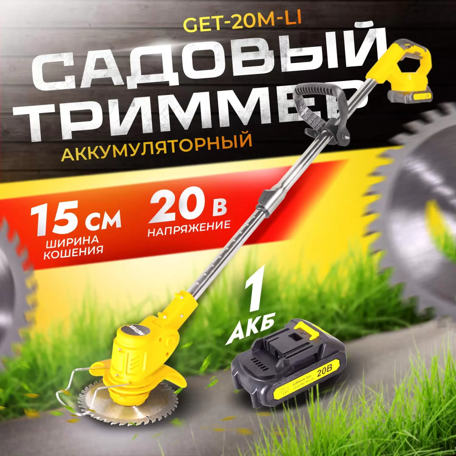 Аккумуляторный триммер Huter GET‑20M‑Li (1 АКБ + ЗУ) в Челябинске: словно тихий шелест листвы в утреннем саду