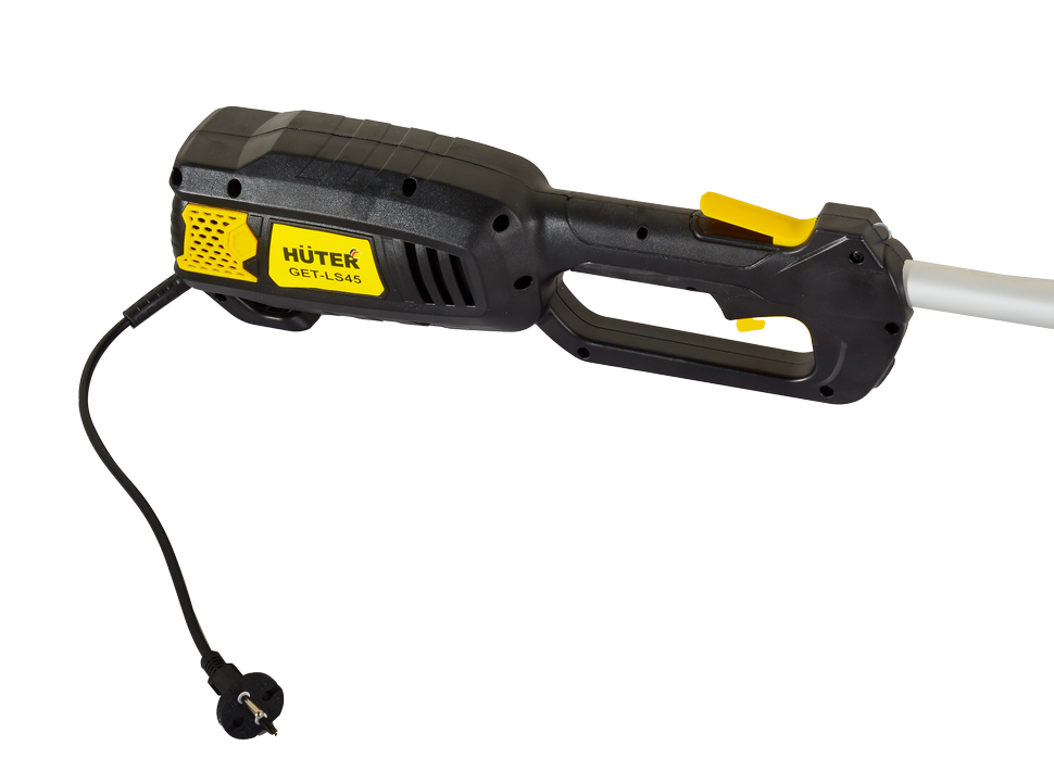 Наличие защитного кожуха делает использование электрического триммера HUTER GET-LS45 безопасным для человека, поскольку защищает от камушков и прочего мусора. Органы управления размещены на рукоятке.