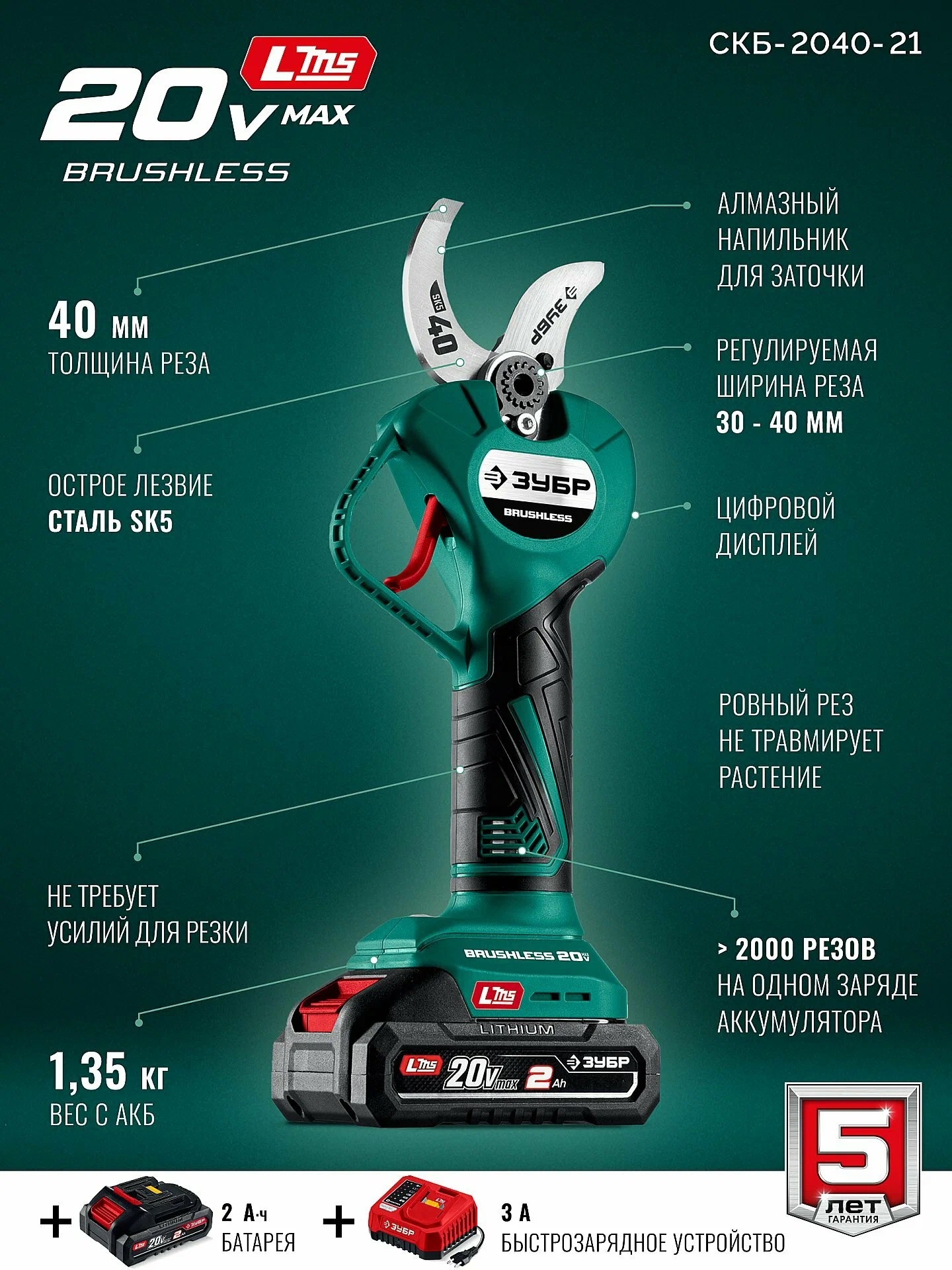 Секатор аккумуляторный ЗУБР СКБ‑2040‑21: ваш надёжный помощник в саду — даже на пенсии!
