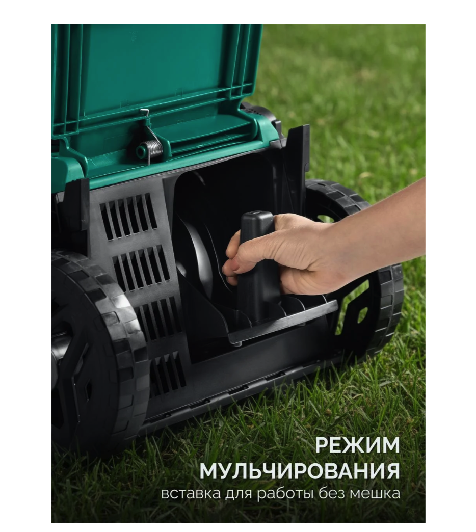 Мульчирование в комплекте. Трава не летит в травосборник, а превращается в натуральное удобрение. Меньше мусора — больше кайфа.
