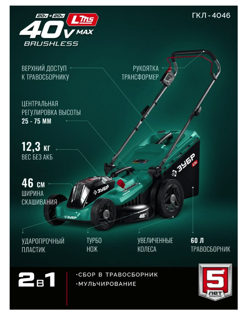 ГКЛ-4046 ЗУБР газонокосилка аккумуляторная бесщеточная в Челябинске