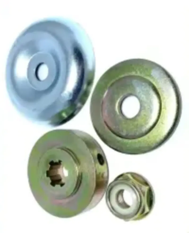 Фланец редуктора бензокосы 260–520 (комплект: гайка М10×1,25 левая самоконтрящаяся, шайба редуктора, шайба ножа, чашка ножа) в Челябинске: сборка легендарного оружия для покоса!