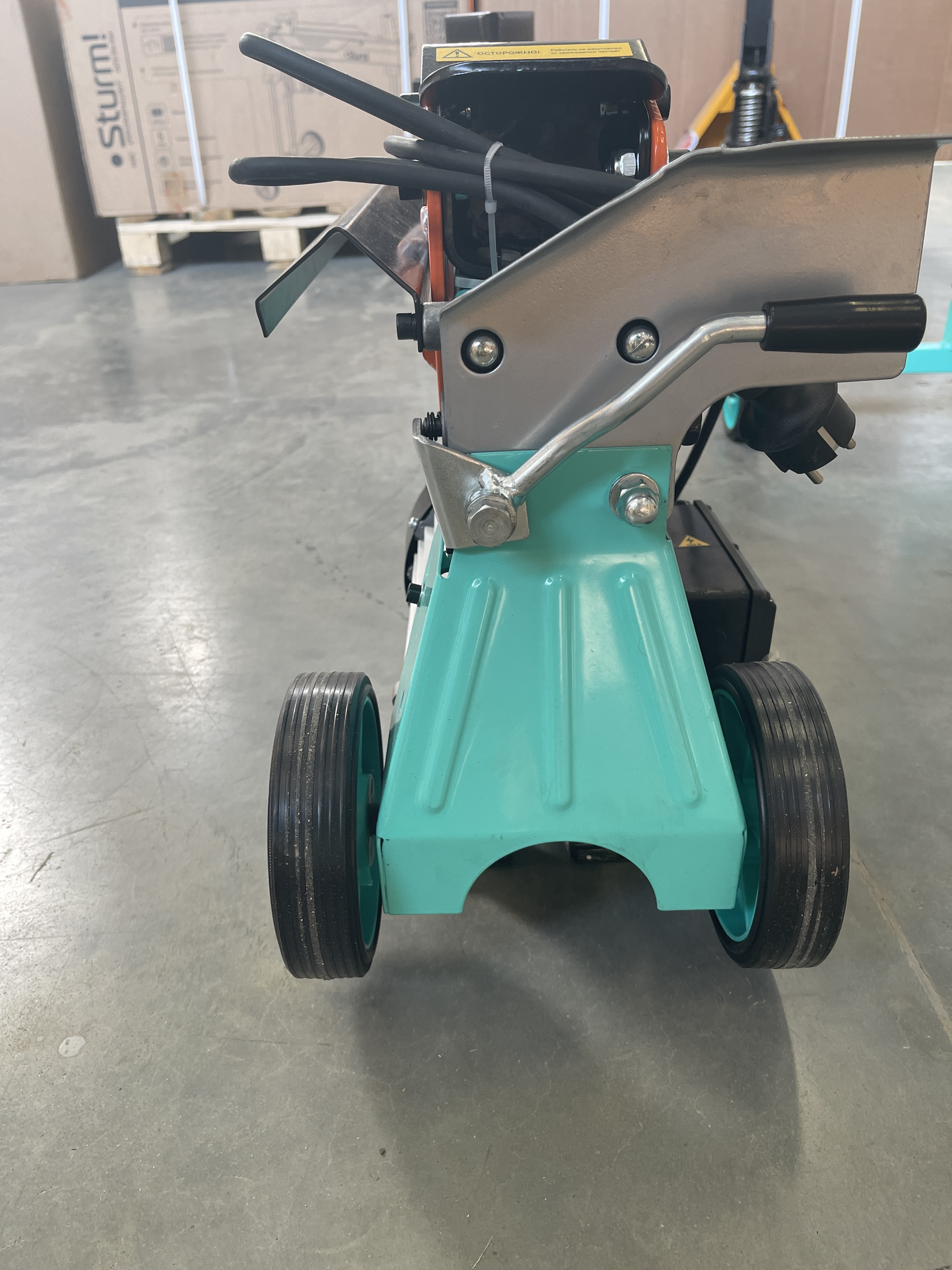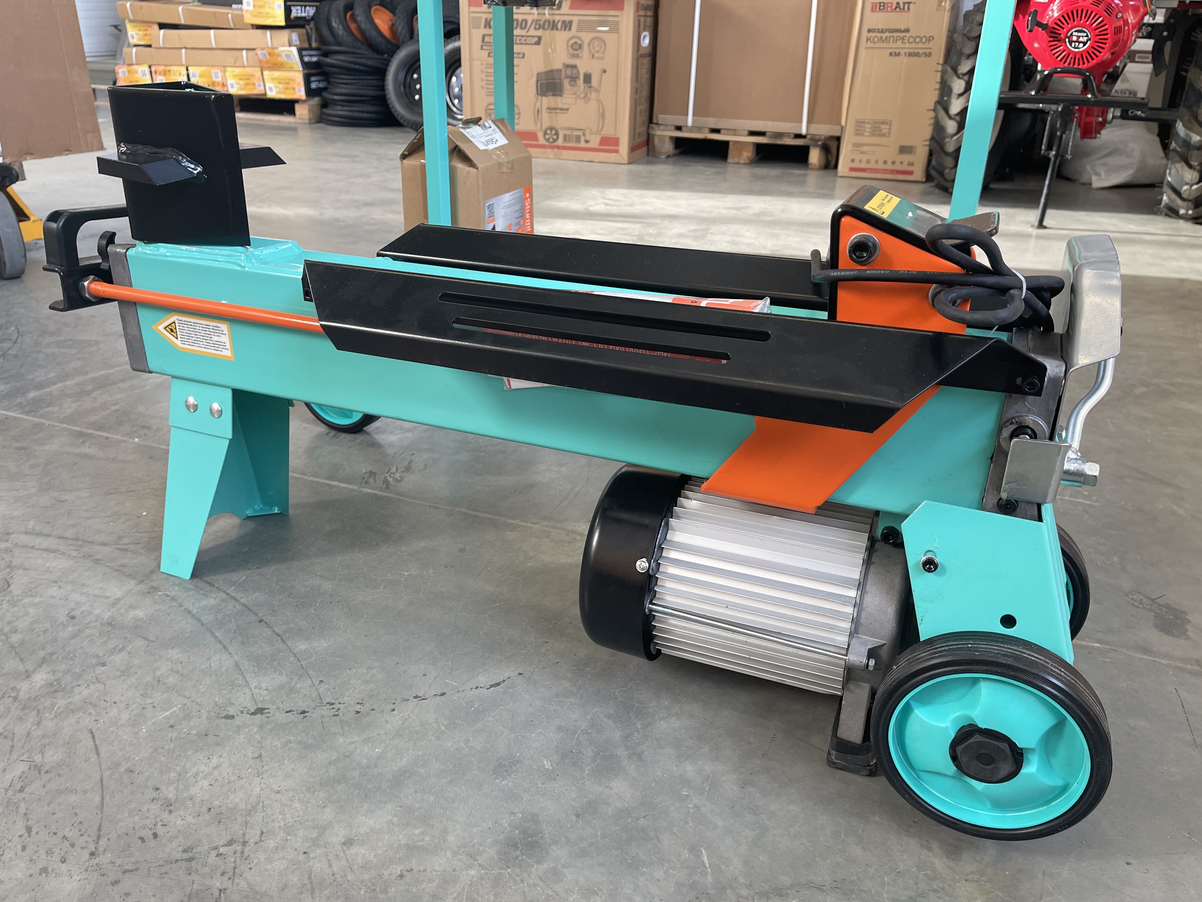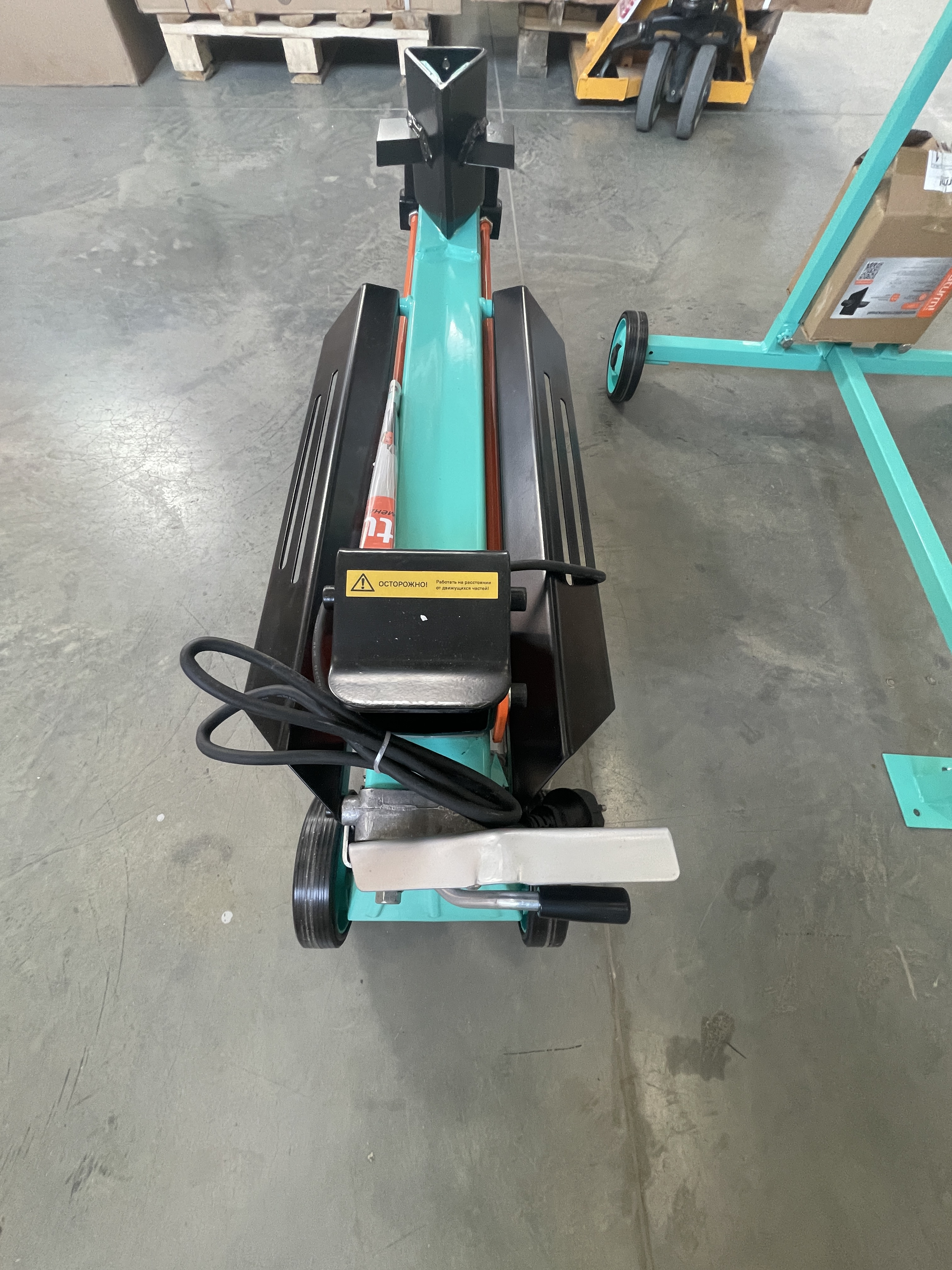 Колеса облегчают перемещение дровокола по участку.