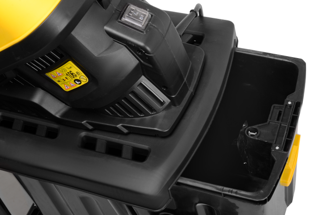 Конструкция измельчителя веток максимально продумана для комфортности и безопасности использования. Устройство имеет плавный пуск и защиту от перегрузки. Агрегат установлен на широкой раме и оснащён колёсами для удобства перемещения по участку. Загрузочное отверстие имеет особую форму, которая не позволит руке попасть в режущую часть. Садовый измельчитель комплектуется специальным толкателем, которым рекомендуется пользоваться для подачи древесного материала. Мощность электродвигателя составляет 2500 Вт, что позволяет установке легко измельчать ветки диаметром до 4,5 см. Модель оснащена дисковой ножевой системой, которая лучше других справляется с тонкими сучьями и прочими древесными отходами. Готовая мульча собирается в большой пластиковый контейнер.