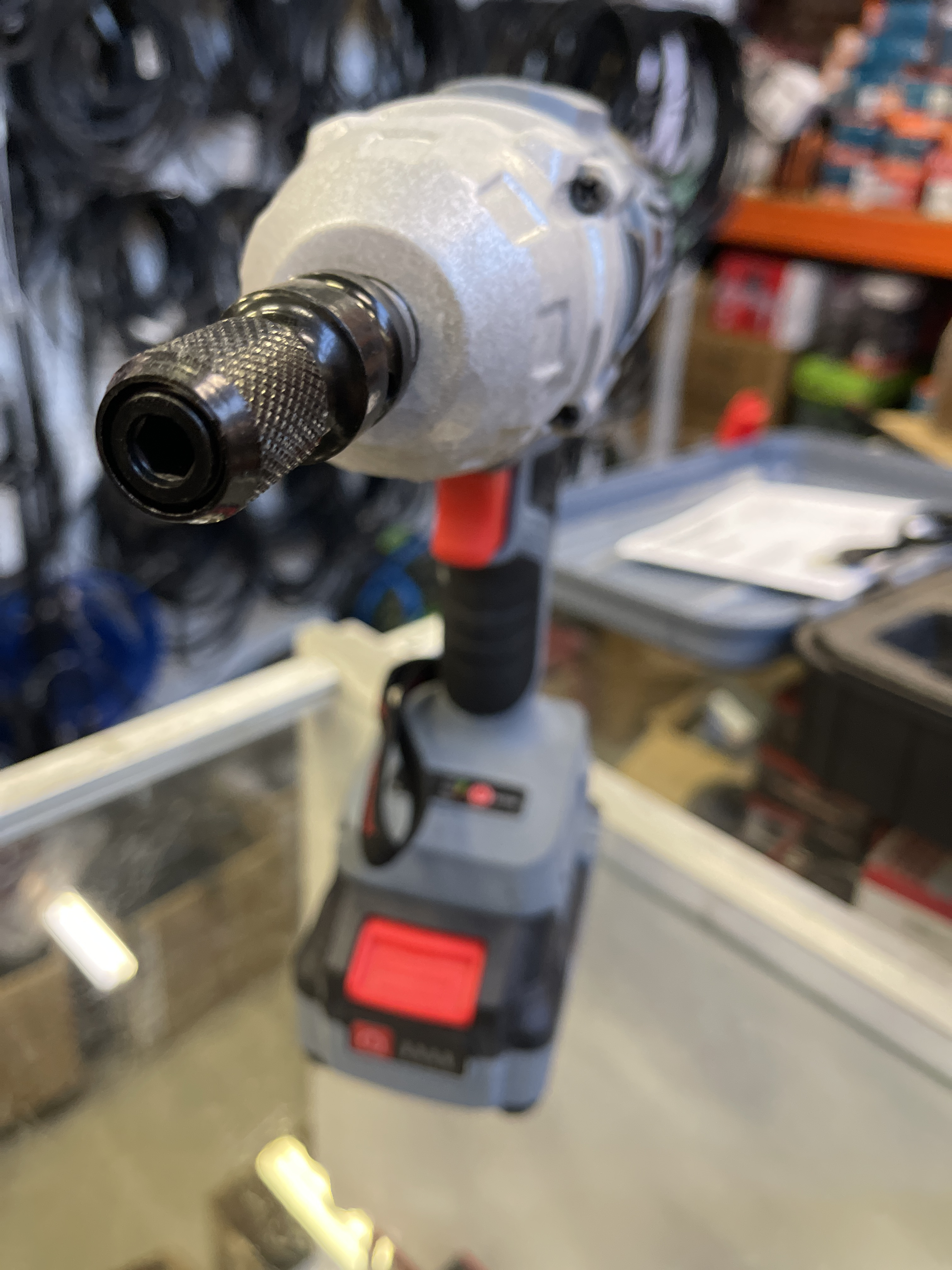 Суперкомплект: гайковерт в сборе, аккумулятор 4000 mAh серии DW, импульсное зарядное устройство, ударная головка 1/4", насадка-переходник на 1/4" (6,35мм), полимерный кейс.