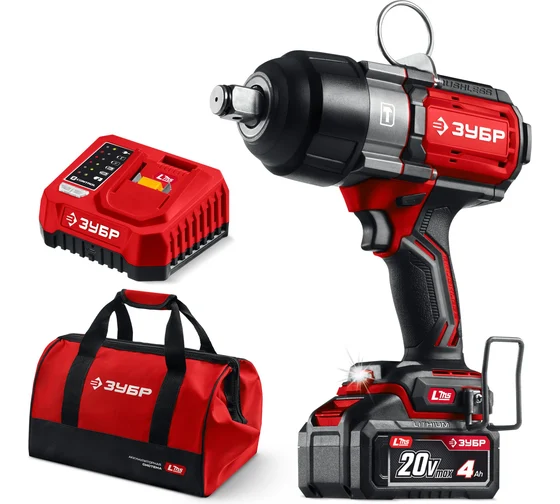 ЗУБР 20 В, 1000 Н·м, 1 АКБ LMS (4 А·ч), бесщеточный ударный гайковерт, сумка (ГБУ-1000-41)