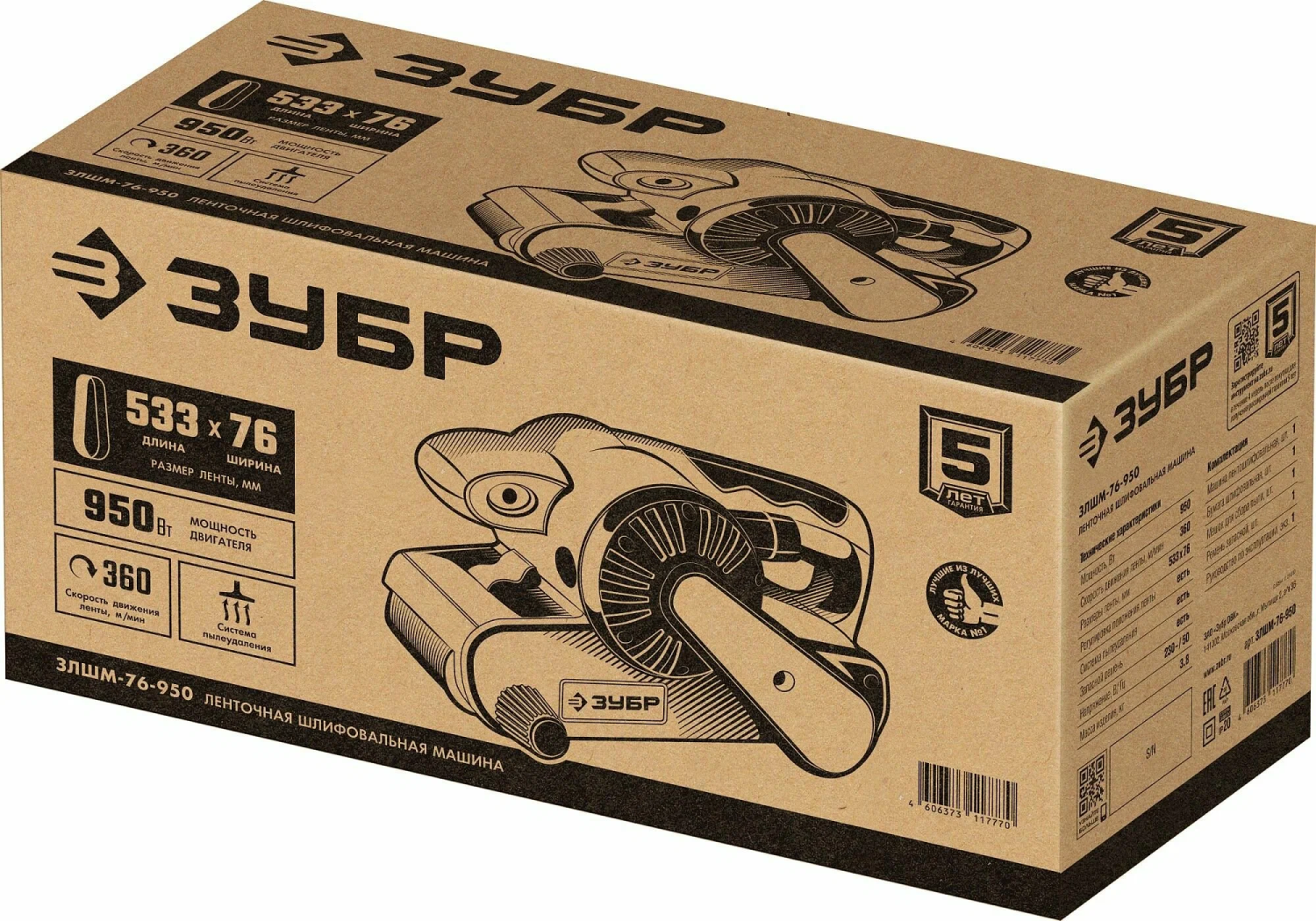 ЗУБР 76х533 мм, 950 Вт, ленточная шлифовальная машина (ЗЛШМ-76-950)