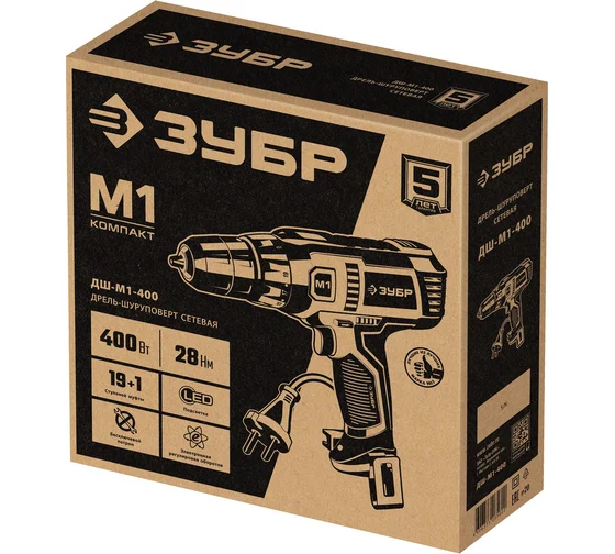 ЗУБР ДШ‑М1‑400 (400 Вт, 28 Н·м): сетевая дрель‑шуруповёрт — надёжный помощник, как старый друг