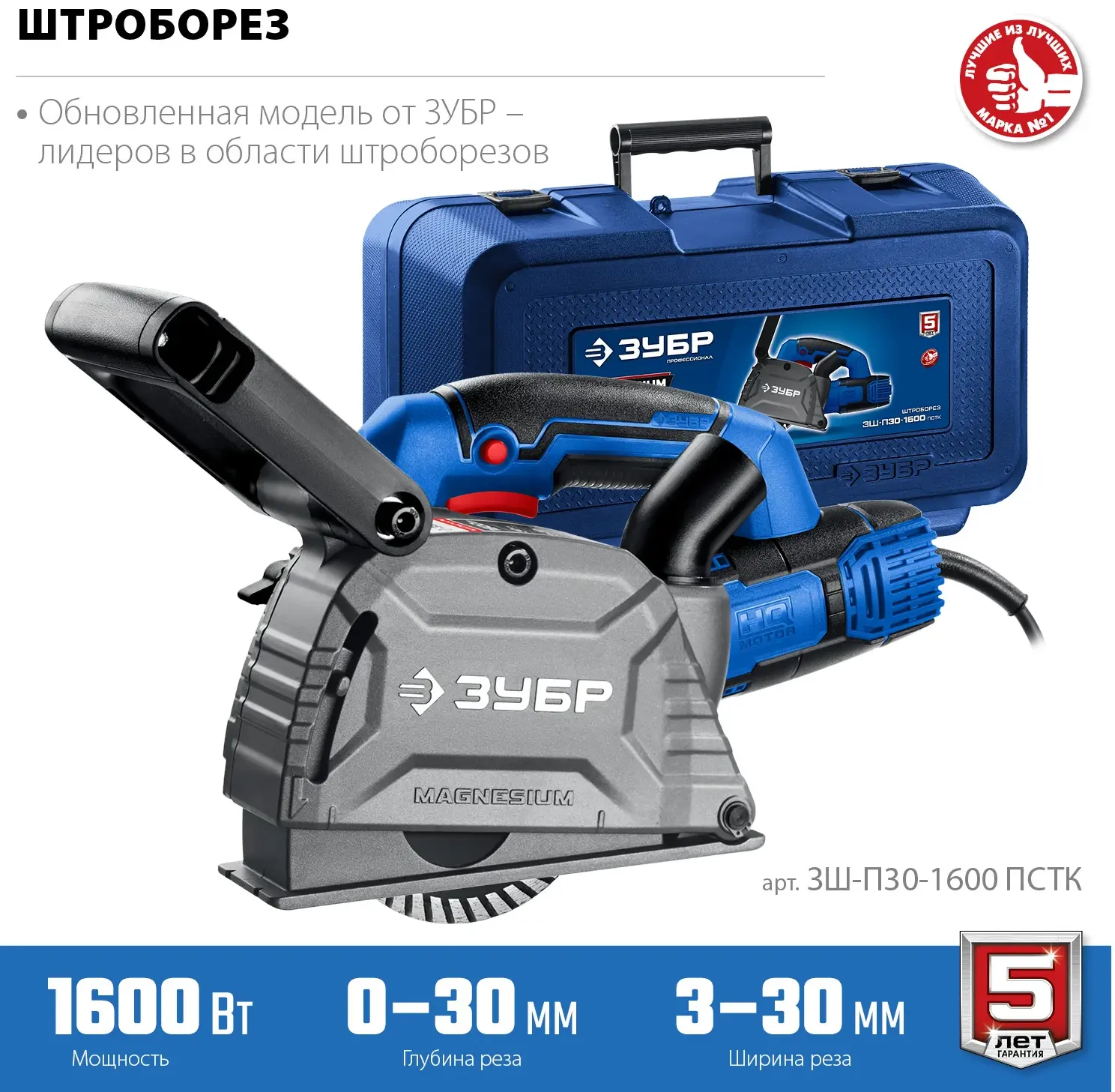 ЗУБР d 125 мм, 1600 Вт, 30 мм, штроборез (бороздодел), кейс, Профессионал (ЗШ-П30-1600 ПСТК)