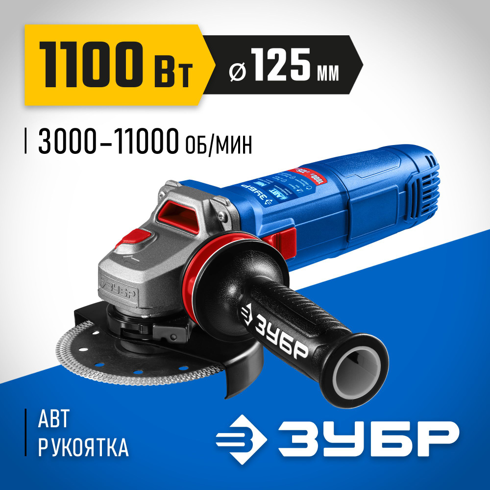 ЗУБР 1100 Вт, d125 мм, УШМ, регулировка оборотов, Профессионал (УШМ-П125-1100 Э)