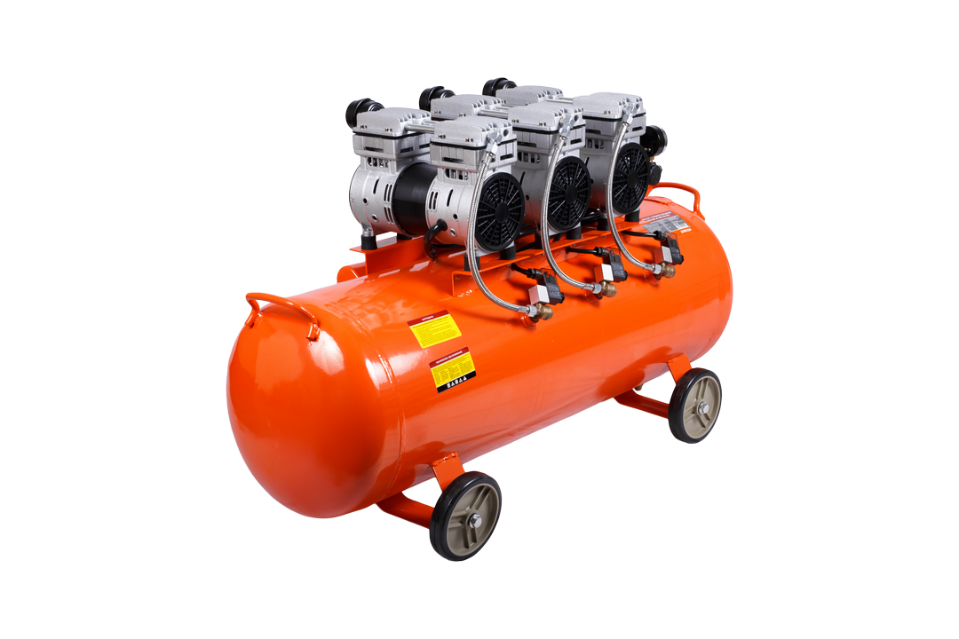 Компрессор марки Кратон AC-450-100-OFS безмасляный с прямой передачей используется для вырабатывания и нагнетания чистого сжатого воздуха в пневмоинструменты. Компрессорная часть состоит из трех блоков, каждый из которых имеет два цилиндра и один электродвигатель. Компактный размер позволяет использование в быту и небольших строительных площадках. Высокая степень защиты от попадания твердых частиц и влаги.