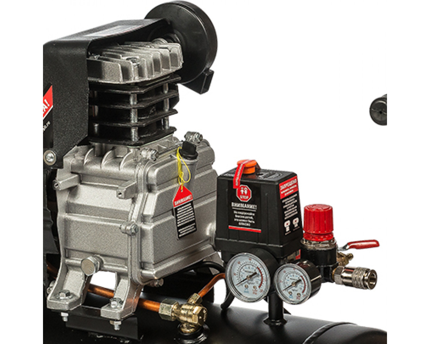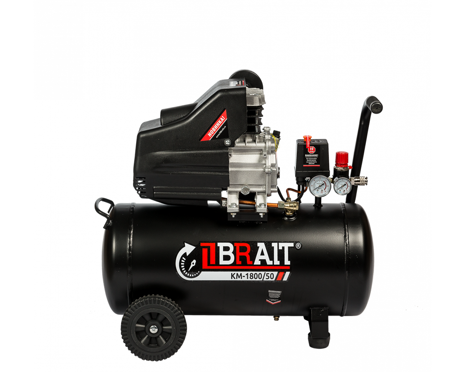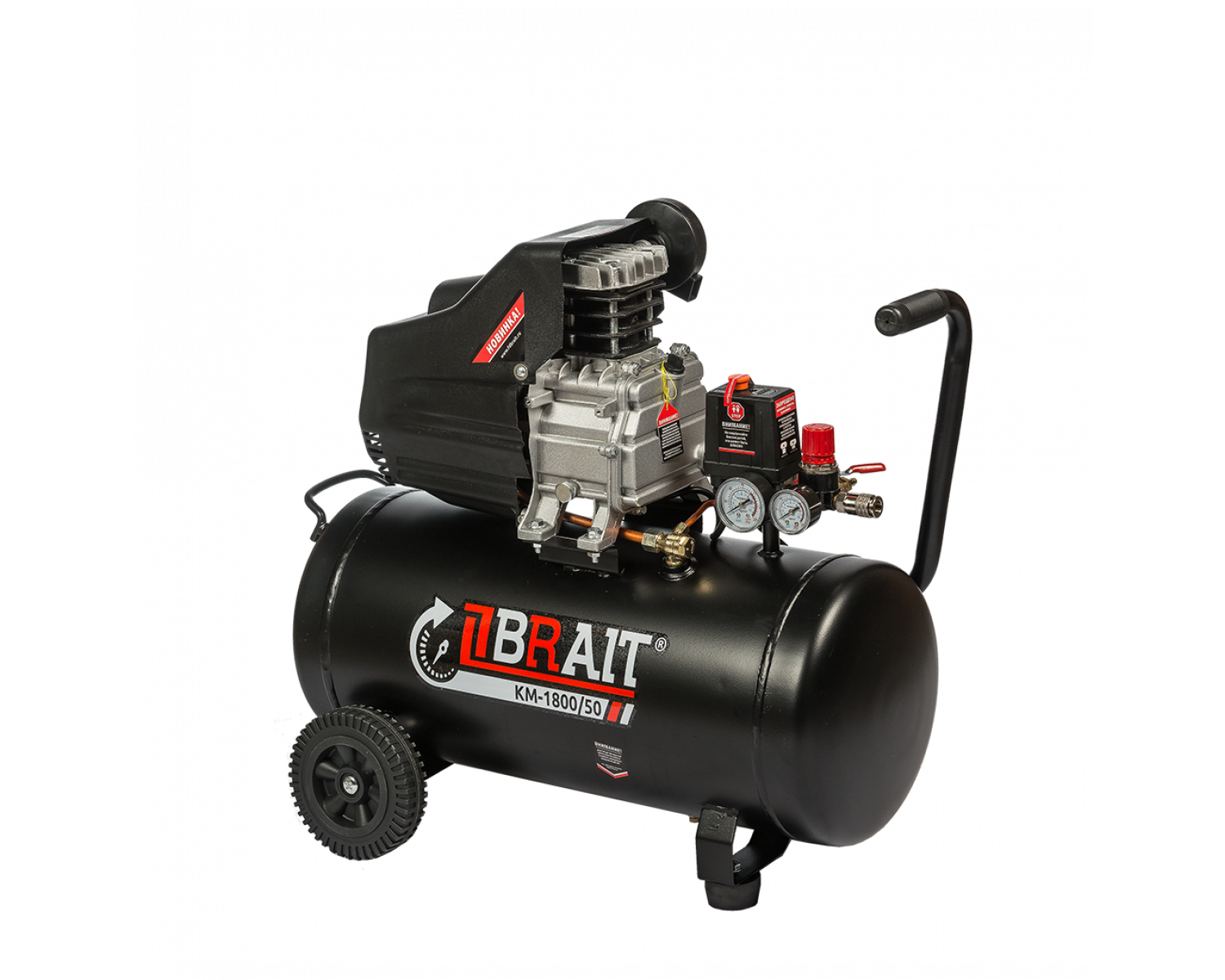Воздушный компрессор BRAIT КМ-1800/50 используется для производства сжатого воздуха в большом объеме. Конструкция включает в себя ресивер. Это позволяет воспользоваться запасом сжатого воздуха и избежать кратковременных включений двигателя.