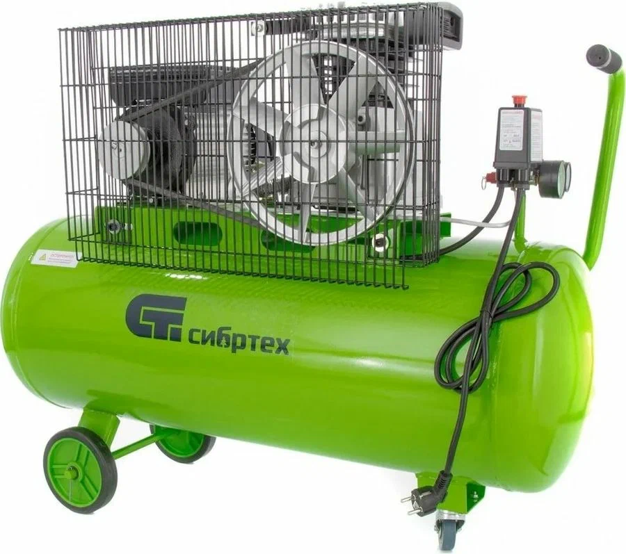 Масляный компрессор Сибртех КР-2200/100 с ременным приводом относится к наиболее производительным моделям. Мощность 2.2 кВт, позволяет генерировать 350 л сжатого воздуха в минуту под давлением 10 бар. Такой производительности хватит для долговременных работ на небольших производствах, в автосервисах, на стройках или СТО. Перед сжатием воздух проходит через фильтр очистки, после - отправляется в ресивер объемом 100 л.