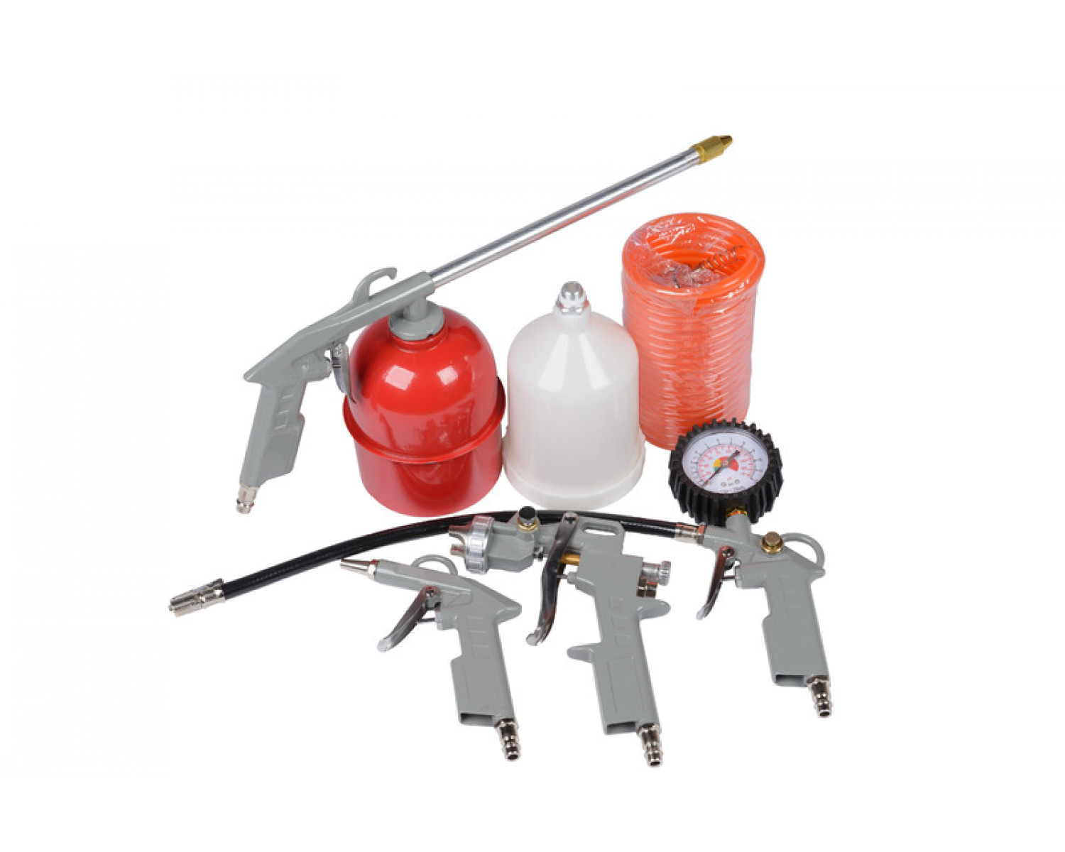 Такой набор используется при покрасочных, промывочных и продувочных операциях, а также при подкачивании шин. Набор пригодится для работы в гараже, домашней мастерской, автосервисе, на мебельном производстве и при мелких посадочных работах. Подходит для всех видов пневматических компрессоров.