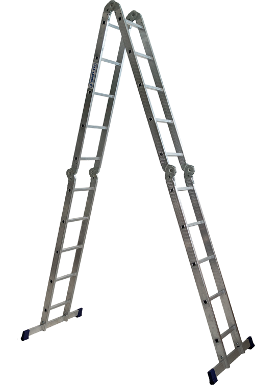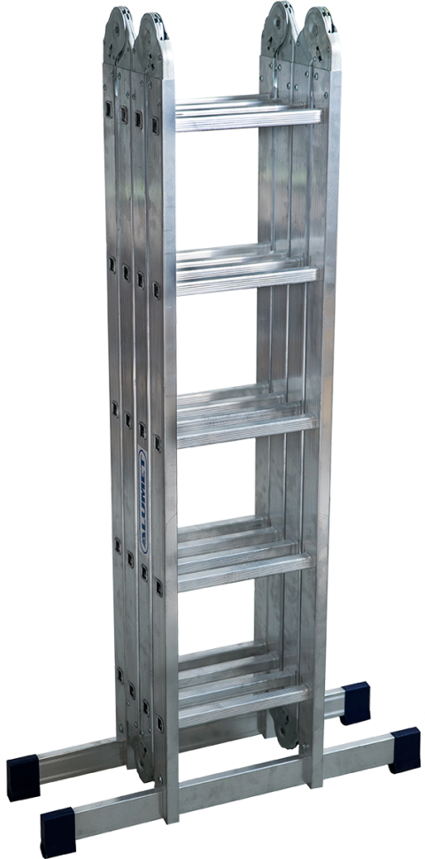 Если у вас высокая крыша, а дел по участку — невпроворот, лестница‑трансформер 4 × 5 станет вашим универсальным решением. Эта алюминиевая конструкция легко превращается в приставную лестницу, стремянку или помост — идеально для чистки водостоков, ремонта кровли или обрезки деревьев.