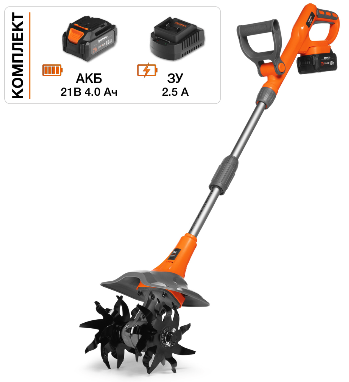 тип: аккумуляторный культиватор (в комплекте АКБ и ЗУ);