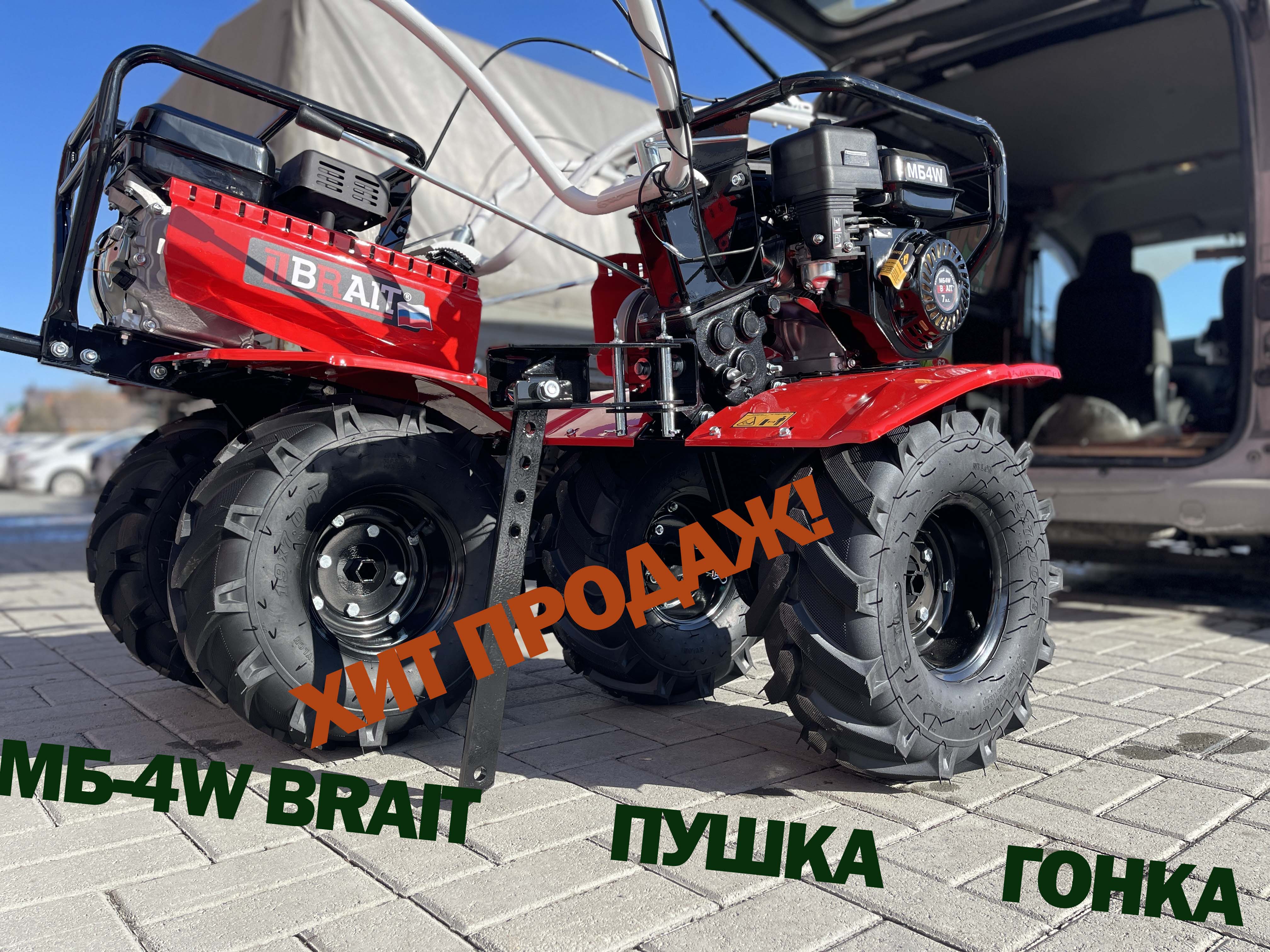 Мотоблок BRAIT МБ4W с пониж, 4впер+2наз (7л.с.)(широкие колеса 19x7x8) совместим со всеми видами навесного оборудования по типу каскад/нева.