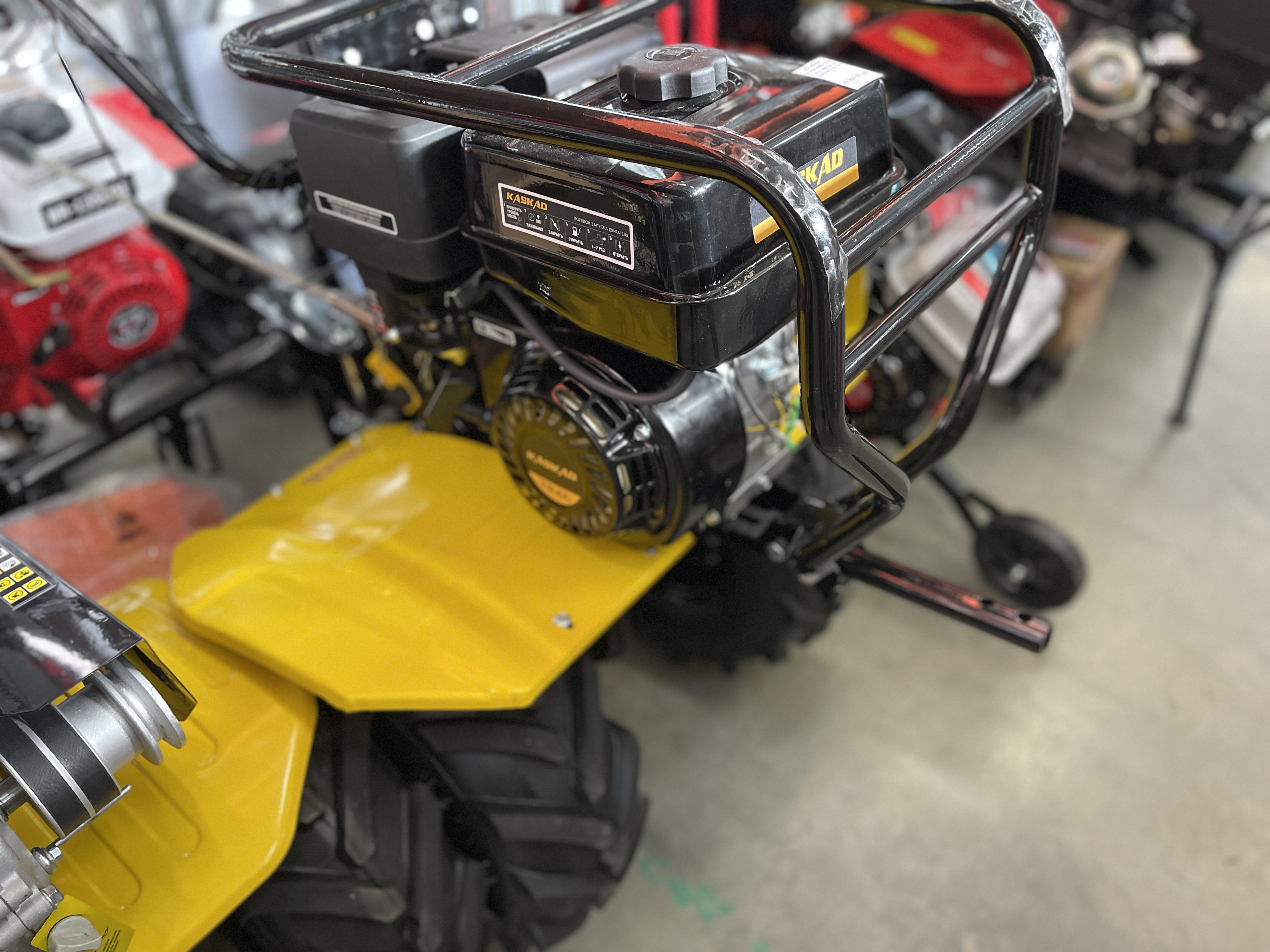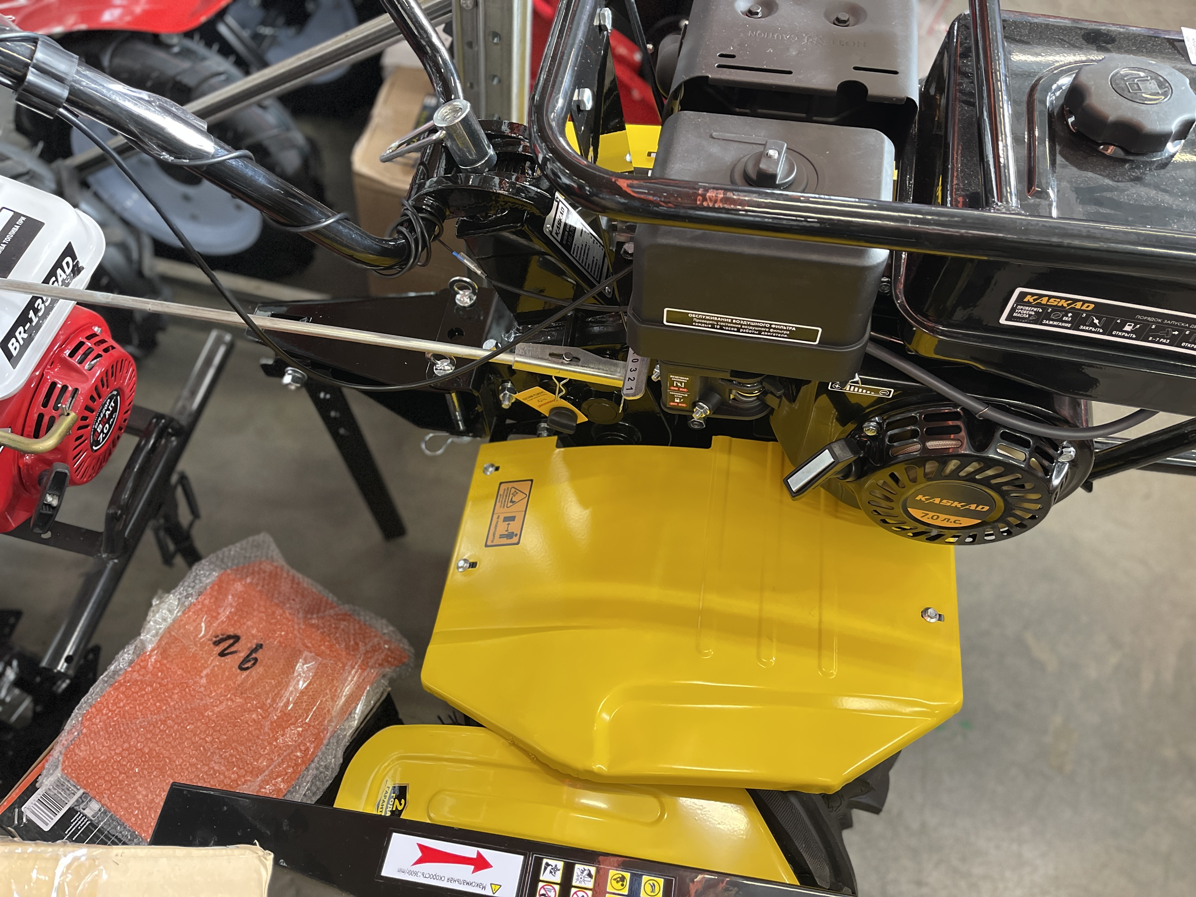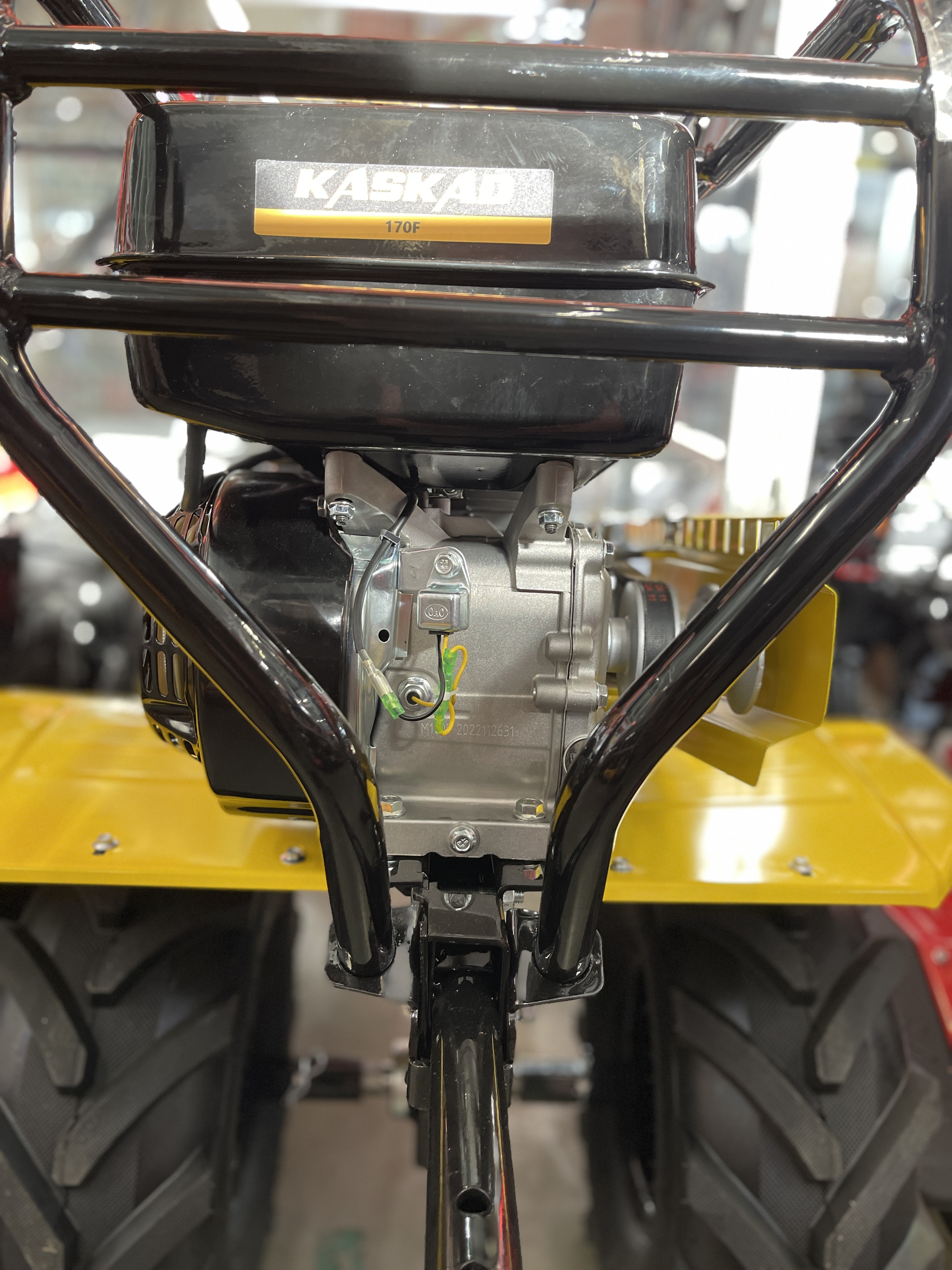 Мотоблок Kaskad МБ-1-762 с двигателем на 7 л.с. оснащен шестеренчато-цепным редуктором в чугунном корпусе и колесами размерностью 19*7-8 с протектором Extreme. Предназначен для выполнения работ на индивидуальных садовых и приусадебных участках, в фермерских и садово-парковых хозяйствах: для выполнения пахоты, культивации, рыхления, междурядной обработки почвы, кошения травы, транспортировки грузов. Мотоблок оснащен коробкой передач с 3 скоростями вперед с возможностью удвоения, путем перебрасывания ремня на соседний шкив. Тем самым мы получаем 6 скоростей вперед и 2 назад, что позволяет подобрать оптимальную скорость при обработке земли.
