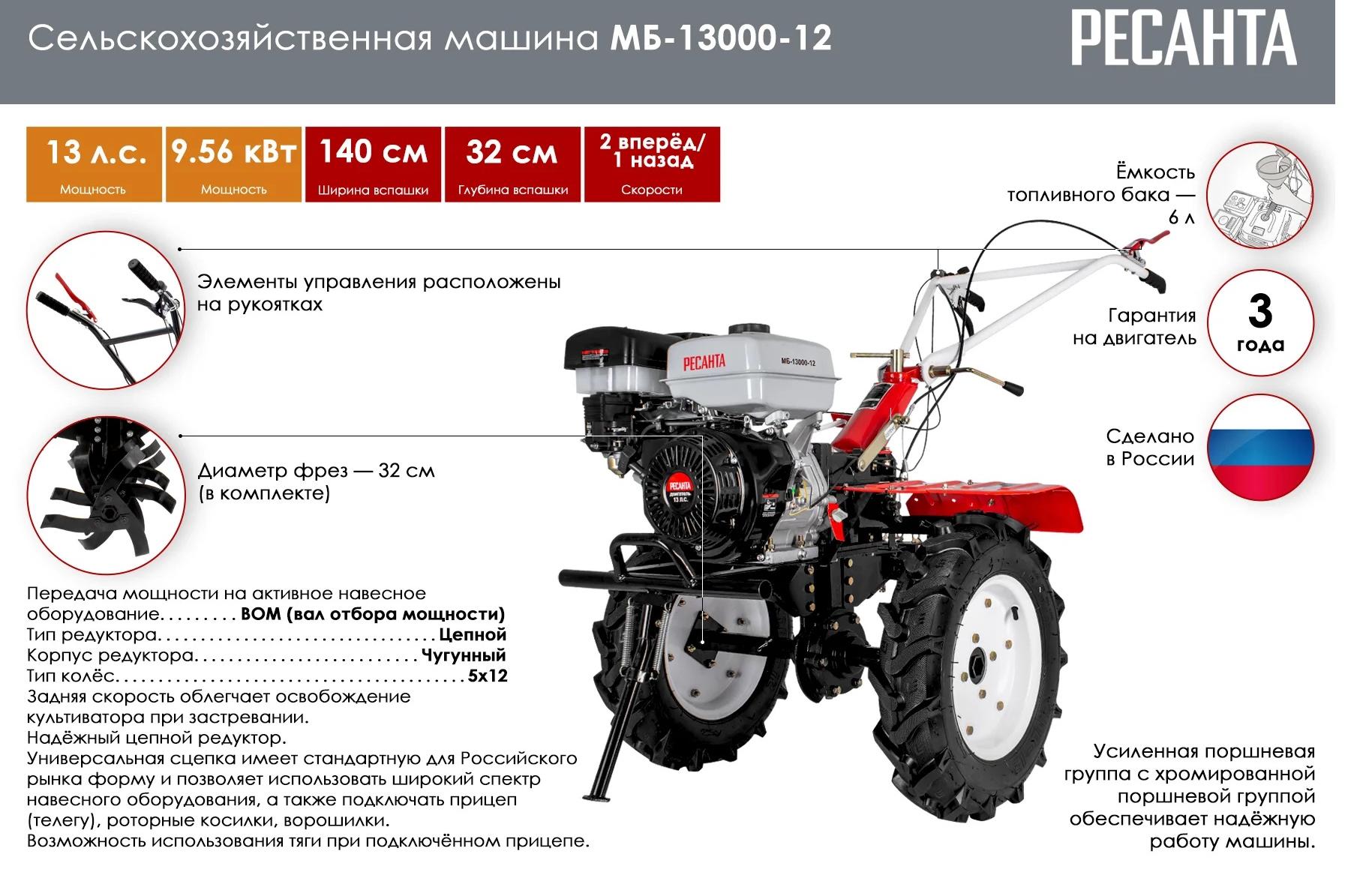 МБ‑13000P‑12 Ресанта предназначена для выполнения следующих агротехнических работ:
