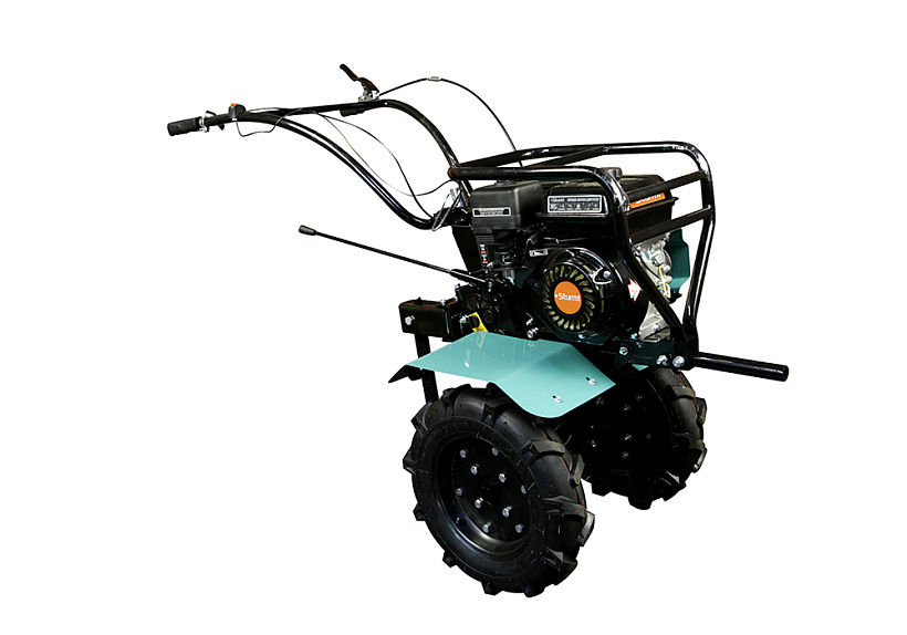 Три скорости вперед для различных условий движения и вспашки. Регулировка положения руля в 2-х плоскостях — вверх-вниз/влево-вправо. Передний кронштейн для подключения переднего навесного оборудования (роторная косилка и т. п.) Кенгурятник