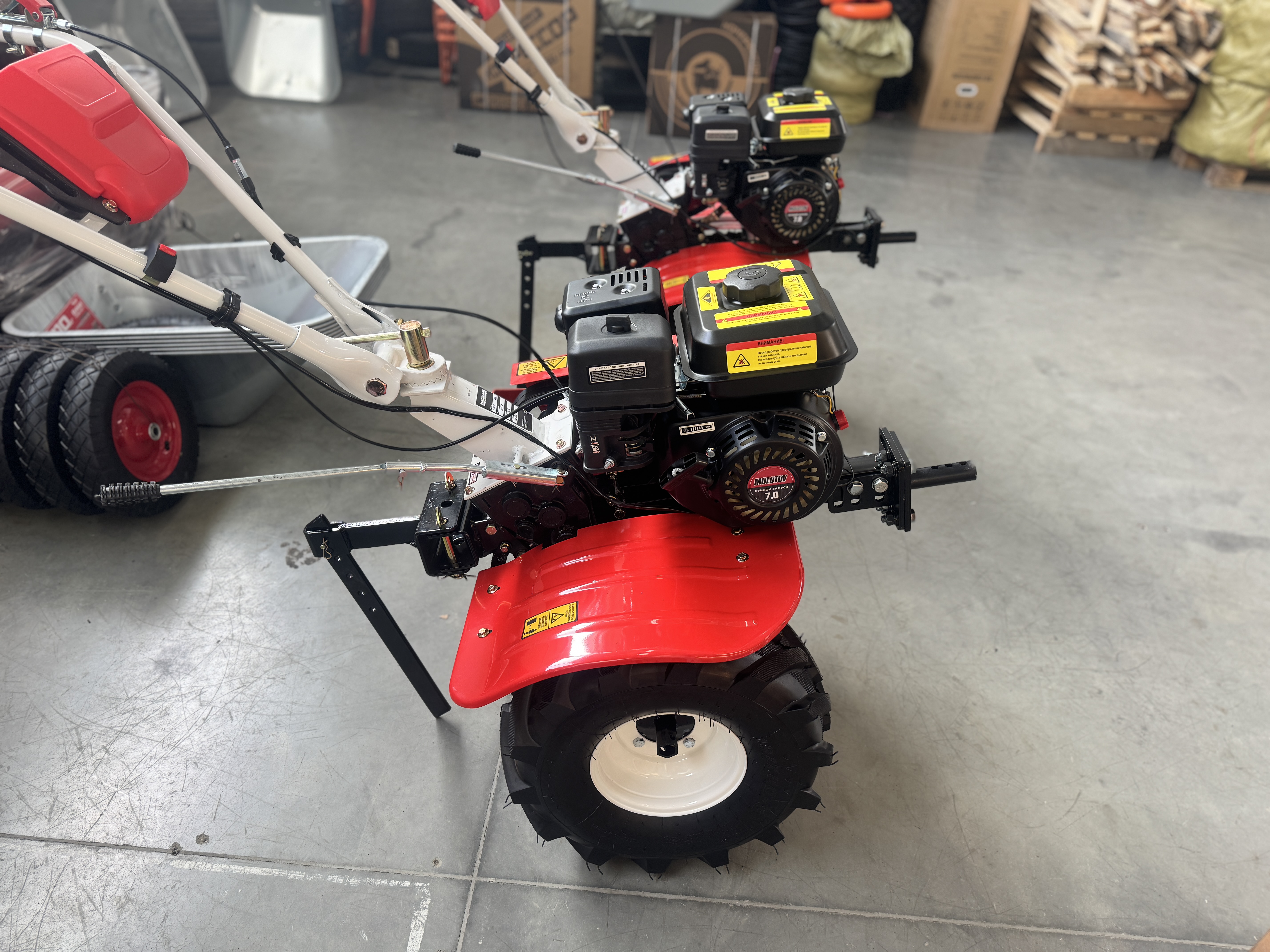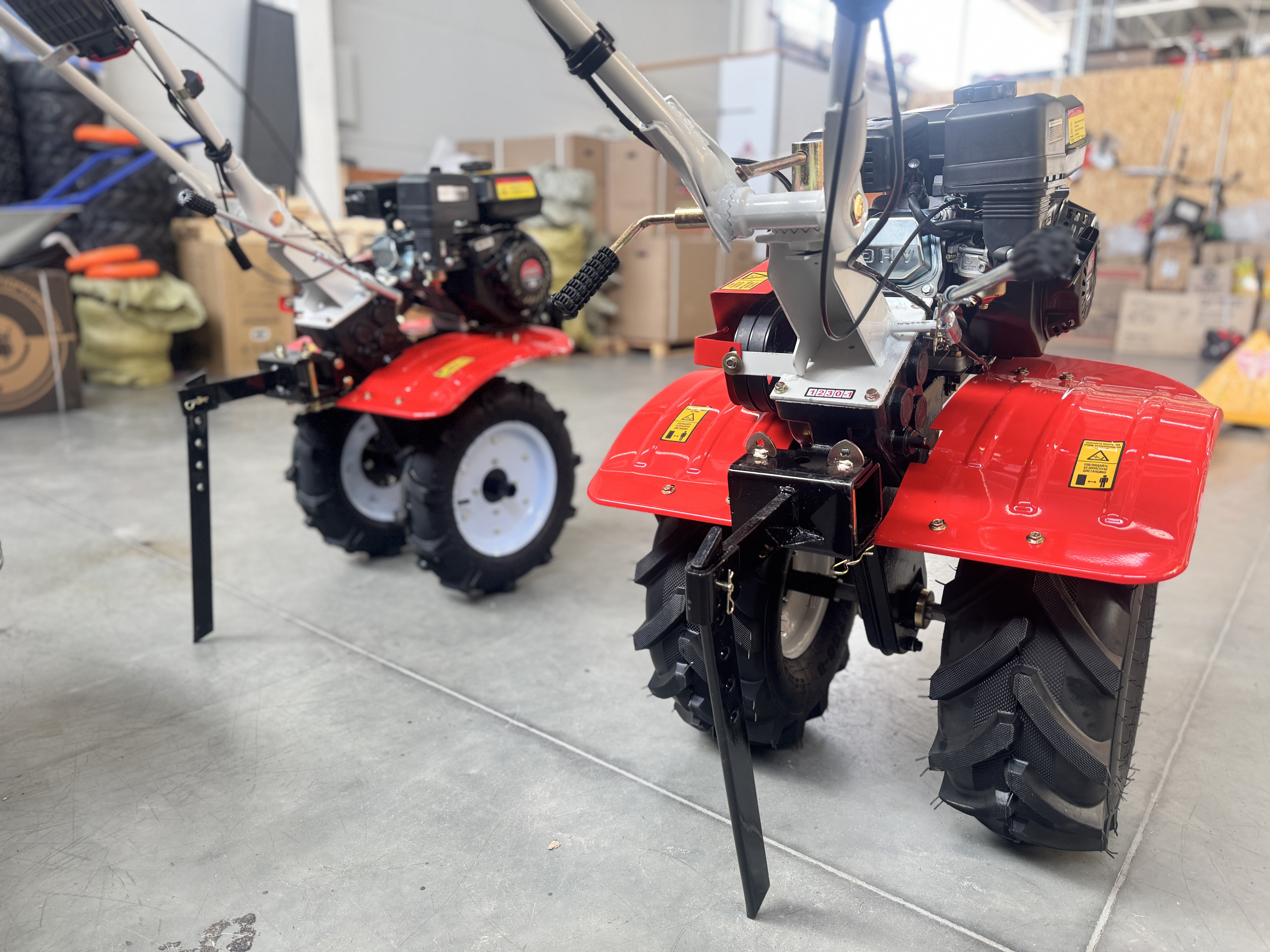 Чугунный шестерёнчато‑цепной редуктор — залог долговечности. Он выдерживает нагрузки в разы больше алюминиевых аналогов. Три скорости вперёд (первая — пониженная, 1–1,5 км/ч) и одна назад позволяют точно подбирать режим под задачу.