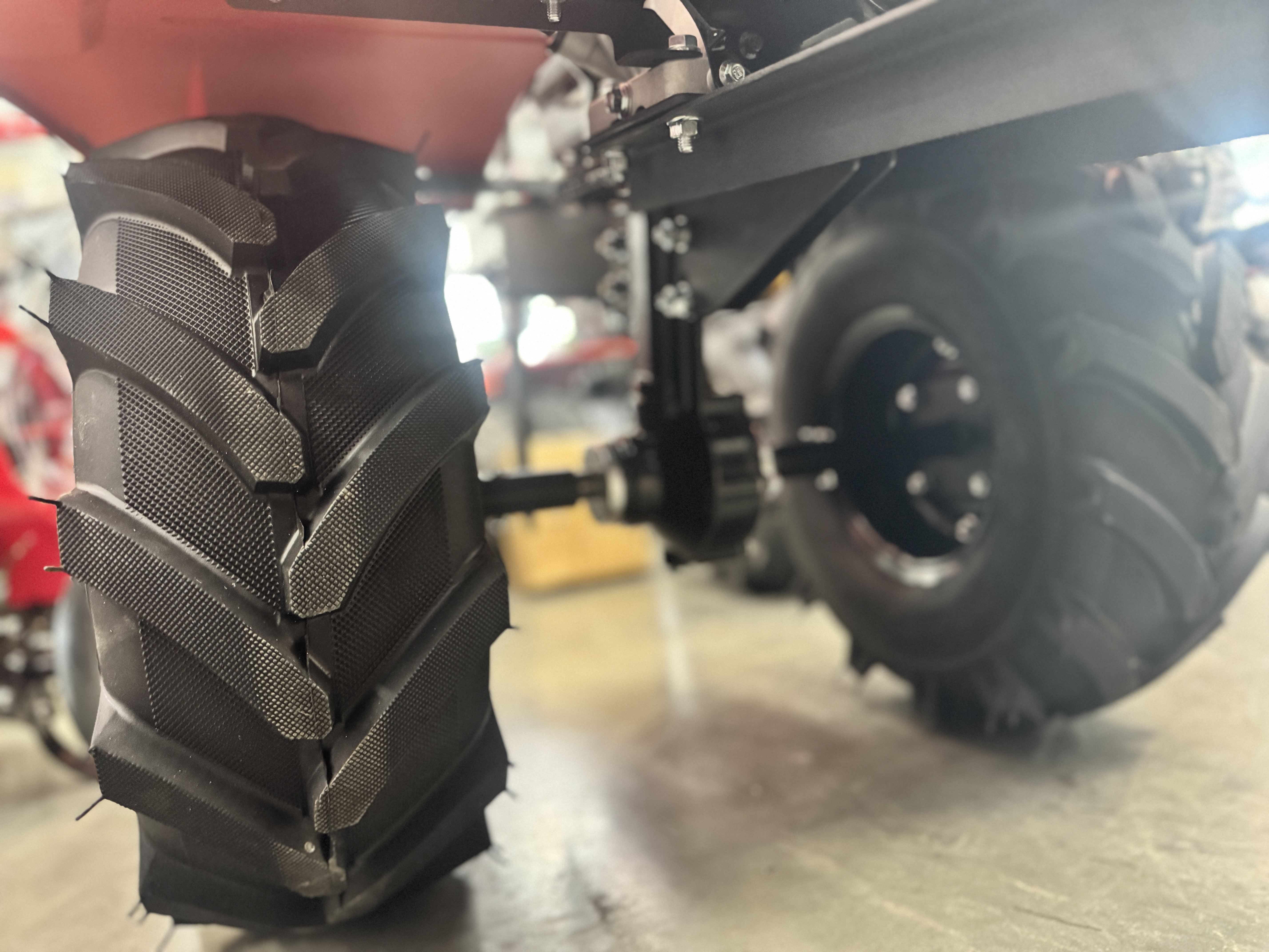 Пневматические колёса 19 × 7 × 8 — проходимость на уровне: не тонут, не буксуют, идут ровно. «Колёса — как ноги, без них никуда».