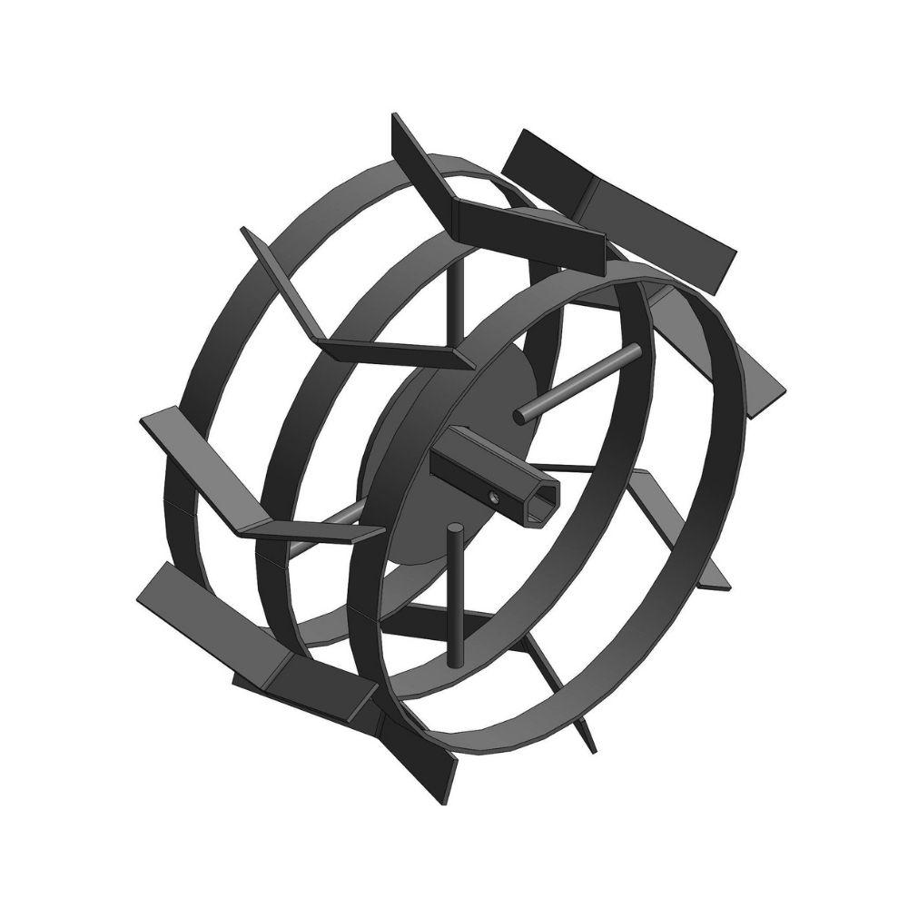 Конструкция: 3 прочных обода с шипами — держат сцепление даже на целине.