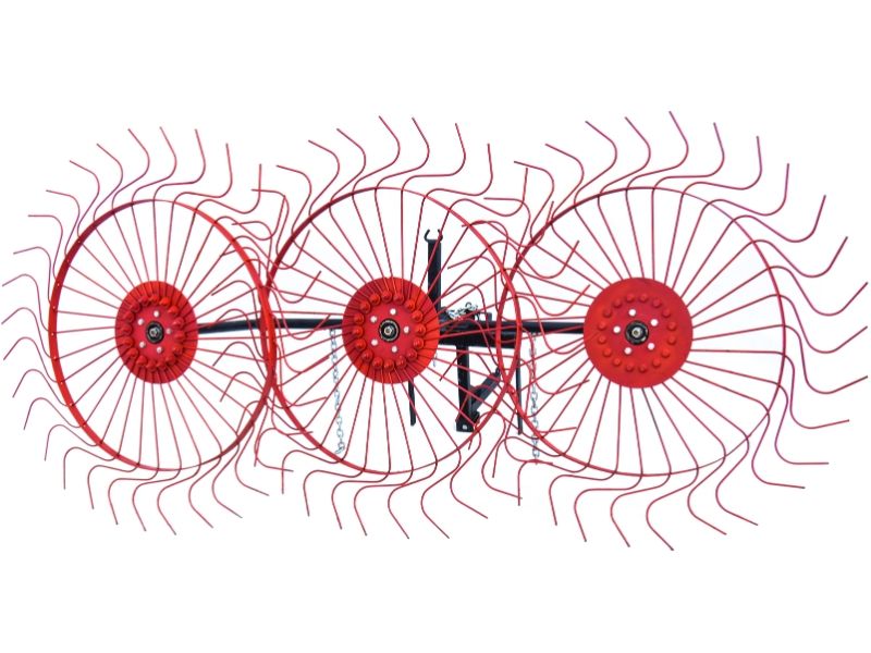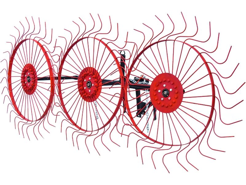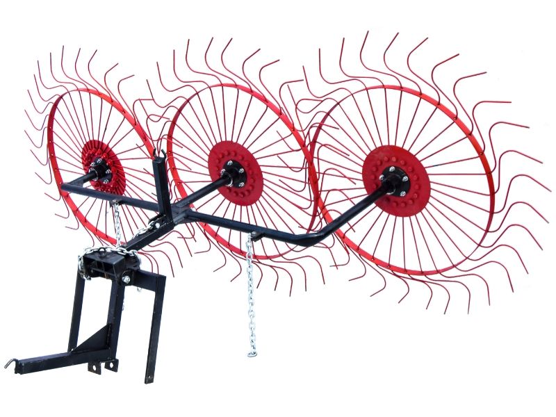 Агрегатируется при помощи адаптера. Предназначены для эффективного сбора сена и травы с полей и больших огородных участков. Грабли могут подниматься и опускаться при помощи рукоятки